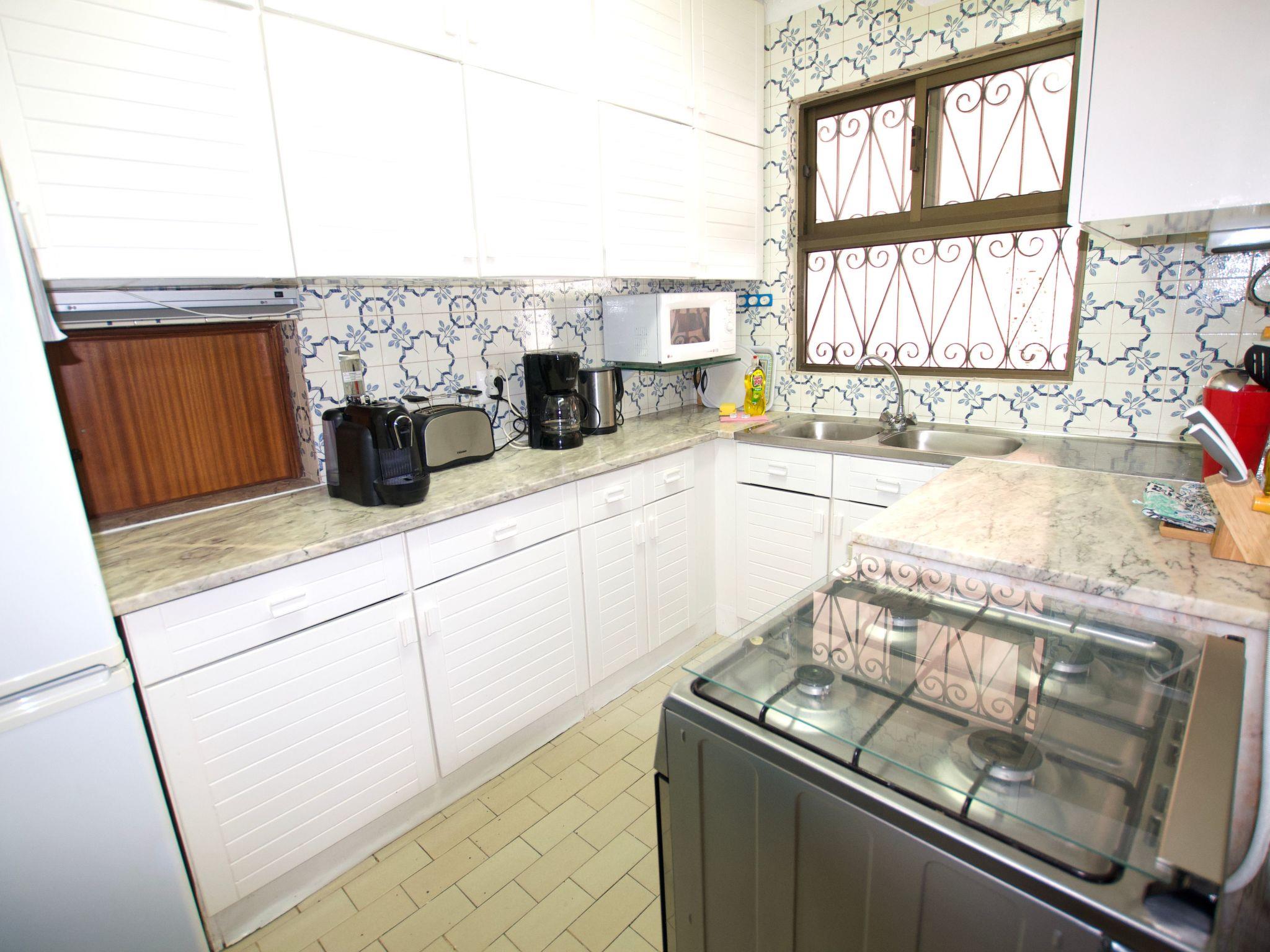 Furnishing in typical old portugiese style but very clean with privat car-board, rooftop and small garden.