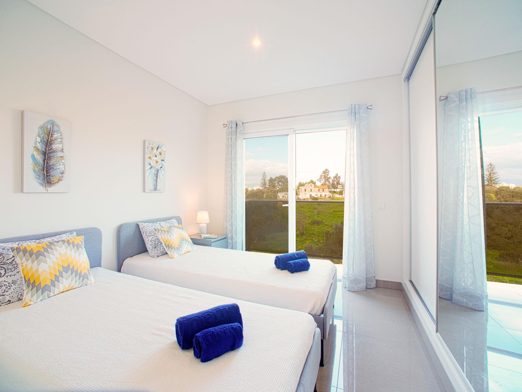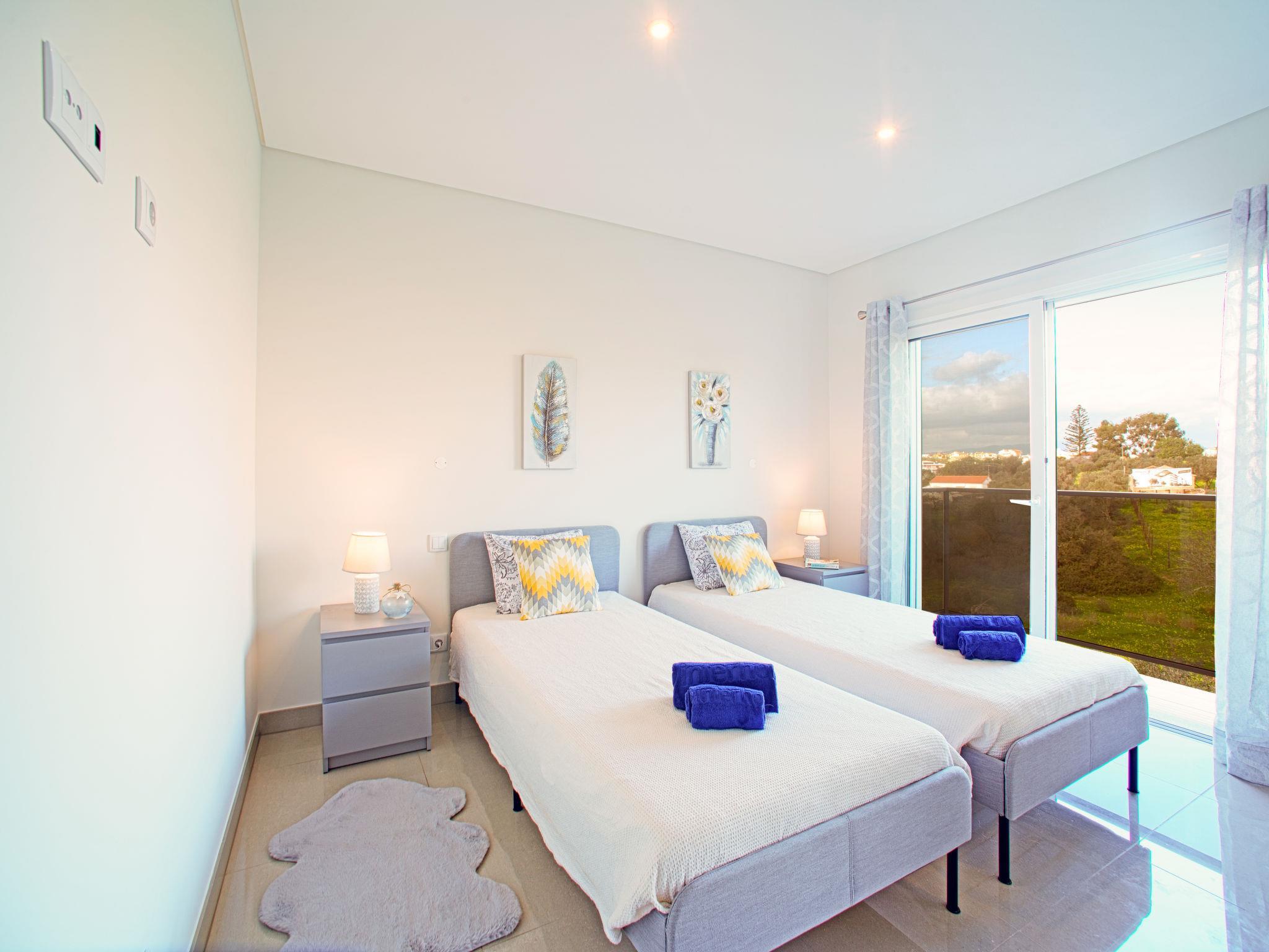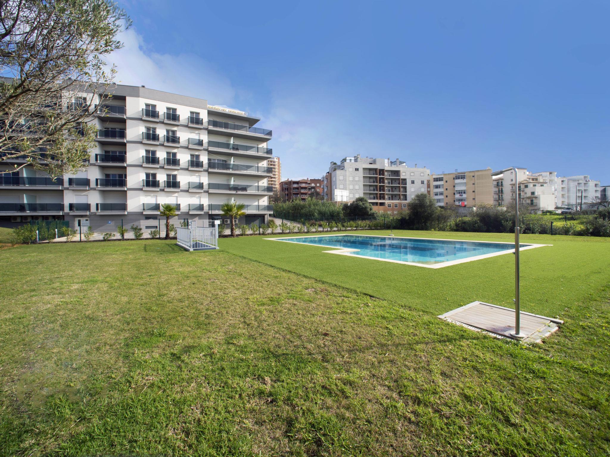 Apartment block "Emerson Plaza". Outside the resort, 450 m from the sea. For shared use: beautiful garden to relax, swimming pool angular (20 x 12 m, depth 145 - 145 cm, seasonal availability: 01.Jan. - 31.Dec.). Outdoor shower. In the house: WiFi, lift, air conditioning. Communal covered parking space n 5. Shop 1.5 km, grocery 1.5 km, supermarket 1.5 km, shopping centre 3.5 km, restaurant 240 m, bar 750 m, bakery 1.5 km, café 1.5 km, bicycle rental 2.7 km, bus stop 1.3 km, railway station 3.5 km, sandy beach "Praia do Amado" 450 m, diving center 3 km. Sports harbour 3.4 km, marina 3.4 km, golf course (18 hole) 3.2 km, surf school 3.5 km, sailing school 3.3 km, tennis 2 km, riding stable 7.4 km, sports centre 1.8 km, children's playground 2.7 km, fishing possibilities 3.4 km. Nearby attractions: Museu de Portimão 2.5 km, Parque de Feiras/Exposições de Portimão 4.3 km, Adventure Golf Alvor 4.6 km, Slide & Splash 9.5 km, Sand City 16.6 km, Autódromo Internacional do Algarve 5.9 km. Hiking paths: Parque da Juventude 1.7 km, Algarve Jeep Safari Tours 2.9 km, Passadiço da Praia da Rocha 3.2 km. Please note: car recommended. Suitable for families. The owner does not accept any youth groups. Loading and unloading of baggage is possible at the holiday house.