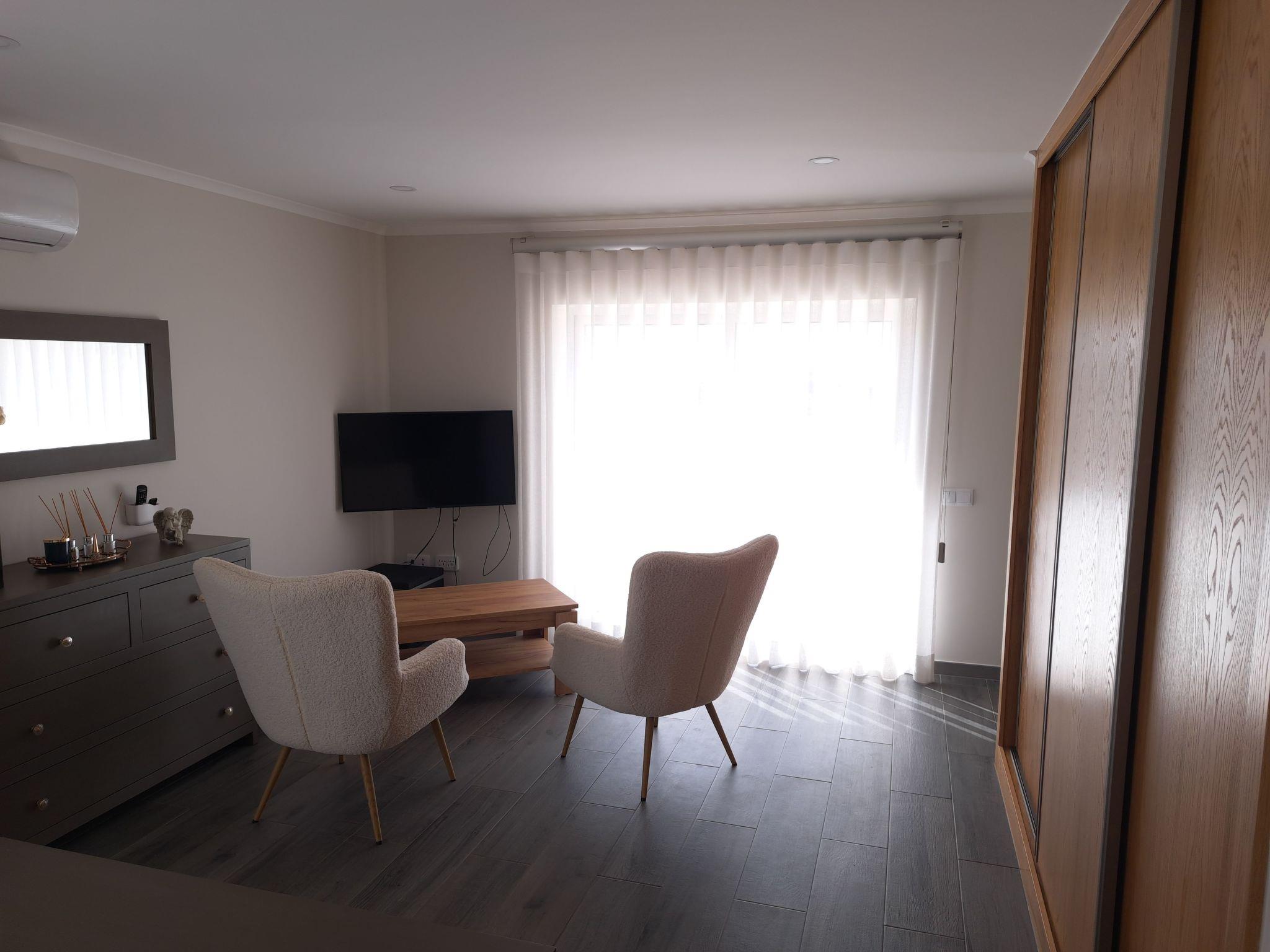 Inside, Casa Rita is thoughtfully designed to cater to your every need with its spacious and comfortable living quarters. The ground floor houses three generously sized bedrooms, each complemented by three well-appointed bathrooms, including one ensuite for added privacy. The interior’s charm is extended to the first floor, where you’ll find the fourth bedroom, boasting its own ensuite bathroom and a balcony. This vantage point offers breathtaking views of the Monchique mountains, setting the scene for serene mornings and peaceful evenings.