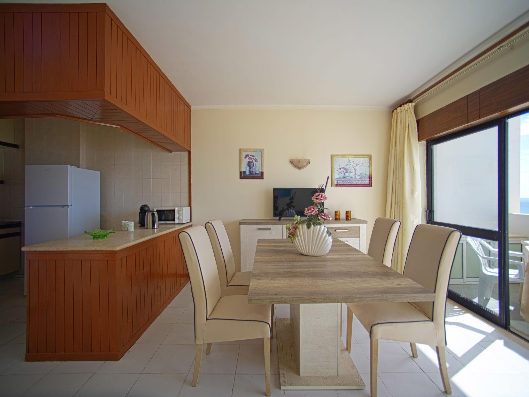 "Torre da Rocha", 2-room apartment 62 m2 on 6th floor, south facing position. Bright: living/sleeping room with 1 french bed (140 cm, length 190 cm), TV and flat screen. Kitchenette (4 hot plates, oven, microwave, freezer, electric coffee machine) with 1 double sofabed (140 cm, length 190 cm). Exit to the balcony. Bath/shower/bidet/WC. No heating option. Small balcony 8 m2, south facing position. Balcony furniture. Marvellous view of the sea. Facilities: washing machine, baby cot for up to 2 year olds. Internet (WiFi). Parking space n 26 (roofed). 66912/AL
