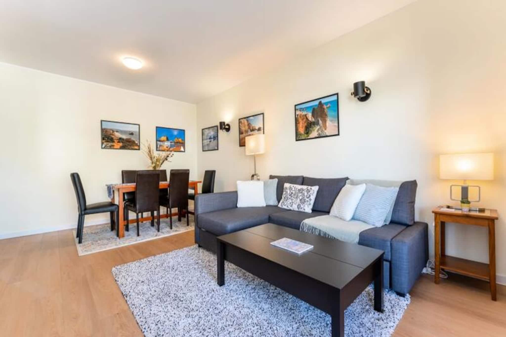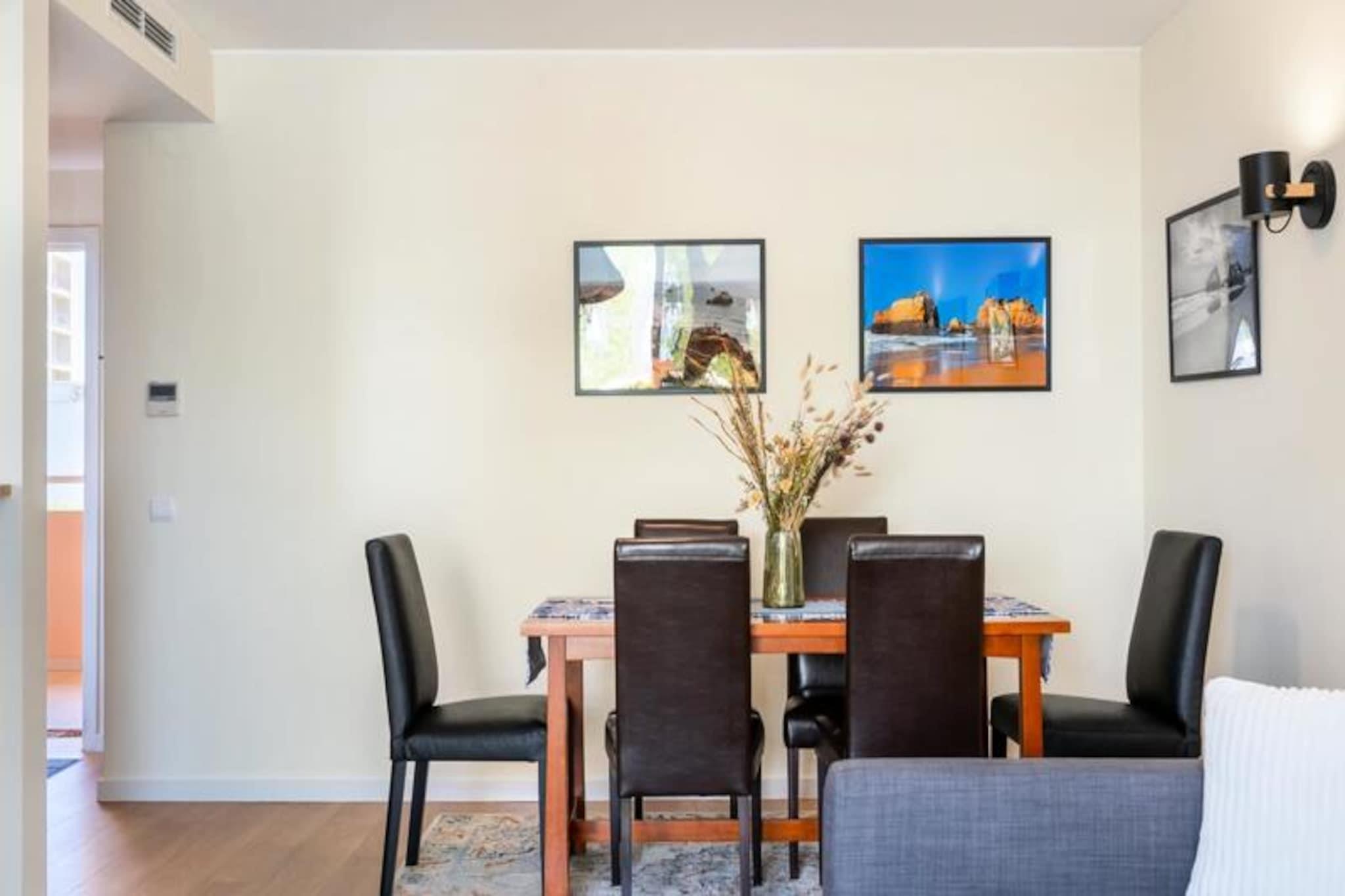 Forestil dig at vågne op til bølgernes blide lyd og Algarves varme sol. Denne luksuriøse lejlighed i Portimão tilbyder den perfekte blanding af komfort, stil og bekvemmelighed, hvilket gør den til et ideelt fristed for familier eller vennegrupper. Beliggende kun en kort gåtur fra det gyldne sand på Praia dos Três Castelos, er dette din indgang til en drømmeferie ved havet. Træd indenfor og oplev et rum designet med afslapning for øje. Lejligheden har to elegant indrettede soveværelser, hver med bløde dobbeltsenge, der sikrer en god nats søvn. En komfortabel sovesofa i stuen giver ekstra soveplads til ekstra gæster. Med to moderne badeværelser – det ene med badekar og det andet med bruser – kan alle nyde privatliv og komfort. Det fuldt udstyrede køkken indbyder til at tilberede lækre måltider, mens den rummelige stue med aircondition er perfekt til at slappe af efter en dag fuld af eventyr. Træd ud på den private altan for at nyde et måltid eller bare nyde den fredfyldte atmosfære. Ejendommens fælles pool er en forfriskende oase, og stranden ligger kun 3 minutters gang derfra og byder på uendelige muligheder for solbadning, svømning og vandsport. Privat underjordisk parkering sikrer din bils sikkerhed, mens nærliggende supermarkeder, restauranter og konditorier tilbyder alt, hvad du har brug for til et problemfrit ophold. For dem, der søger eventyr, ligger Portimãos livlige gamle bydel, den berømte Praia da Rocha og attraktioner som Slide and Splash vandland og Zoomarine inden for rækkevidde. Uanset om du er her for at slappe af, udforske eller nyde det lokale køkken, er denne lejlighed det perfekte udgangspunkt. Book nu, og lad Portimãos magi skabe minder, der varer hele livet.