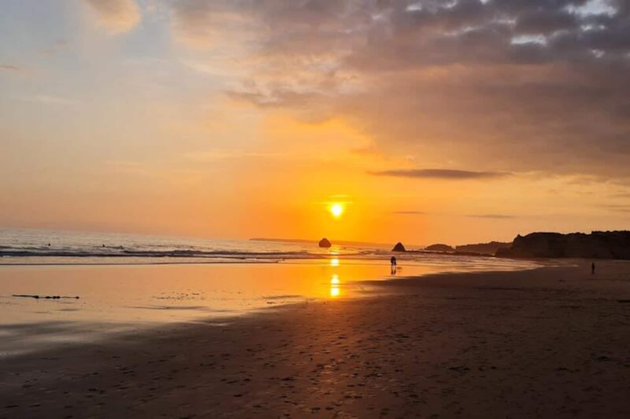 Højt over det gyldne sand ved Praia dos Três Castelos tilbyder Vista Bonita en rolig oase med panoramaudsigt over Atlanterhavet, Monchique-bjergene og den pulserende by Portimão. Denne moderne ferielejlighed, der ligger på 18. sal, er din port til Algarves uendelige skønhed og charme, kun 250 meter fra en af ??regionens mest fantastiske strande. Uanset om du søger afslapning eller eventyr, er dette den perfekte base for din drømmeferie. Træd indenfor og oplev et lyst, luftigt rum designet til komfort og bekvemmelighed. Lejligheden har to private balkoner, hvor du kan nippe til din morgenkaffe, mens du ser solopgangen, eller slappe af med et glas vin, mens solen går ned over havet. Moderne faciliteter inkluderer aircondition, automatiske persienner, et Smart TV, Wi-Fi og et fuldt udstyret køkken til at tilberede dine yndlingsmåltider. Bygningen tilbyder også en sæsonbestemt swimmingpool, en tennisbane og sikker underjordisk parkering, hvilket sikrer et stressfrit ophold. Vista Bonitas beliggenhed er uovertruffen. En kort gåtur bringer dig til den livlige Praia da Rocha-boulevard, der er fyldt med restauranter, barer og butikker. For familier tilbyder den nærliggende Zoomarine og vandlande uendelig underholdning, mens naturelskere kan udforske de dramatiske klipper og skjulte bugter langs Algarve-kysten. Med fremragende transportforbindelser og gratis parkering kan du nemt udforske hele regionen, fra den historiske by Lagos til de maleriske landsbyer i det østlige Algarve. Uanset om du rejser med familie eller venner, lover Vista Bonita en blanding af komfort, bekvemmelighed og uforglemmelige udsigter. Book dit ophold i dag, og oplev Algarves magi fra dette fantastiske udsigtspunkt.
