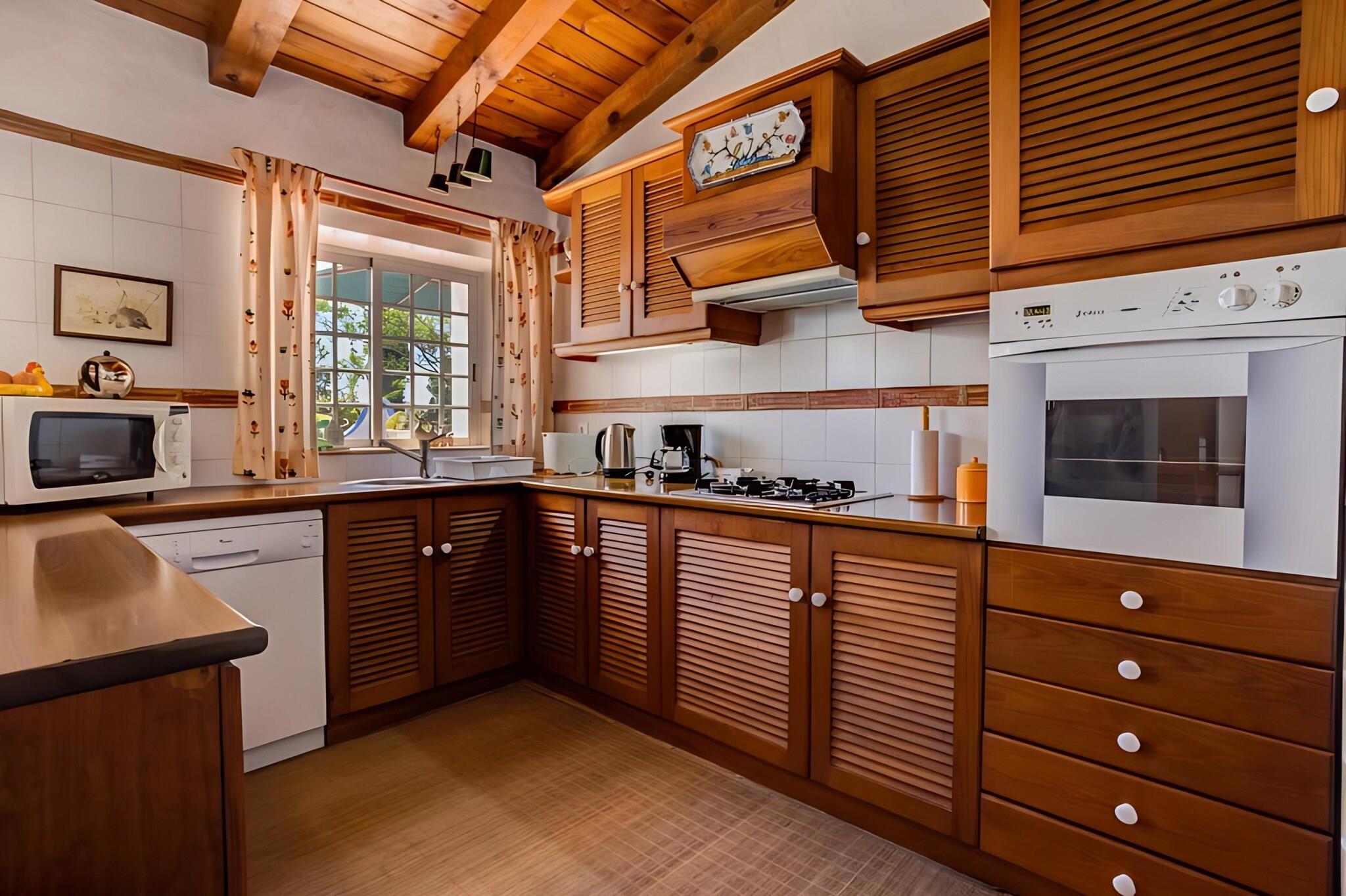 Stue(Fjernsyn, sofahjørne), Køkken(spisebord, elkedel, brødrister, kaffemaskine, ovn, mikrobølgeovn, opvaskemaskine , køleskab, fryser, ), soveværelse(dobbeltseng), badeværelse(badekar, bruser, håndvask, toilet), Internetadgang, Havemøbler, Fjernsyn, tørretumbler, vaskemaskine, klimaanlæg, have, parkering, swimmingpool(deles med andre gæster), strygejern, føntørrer, Alarm