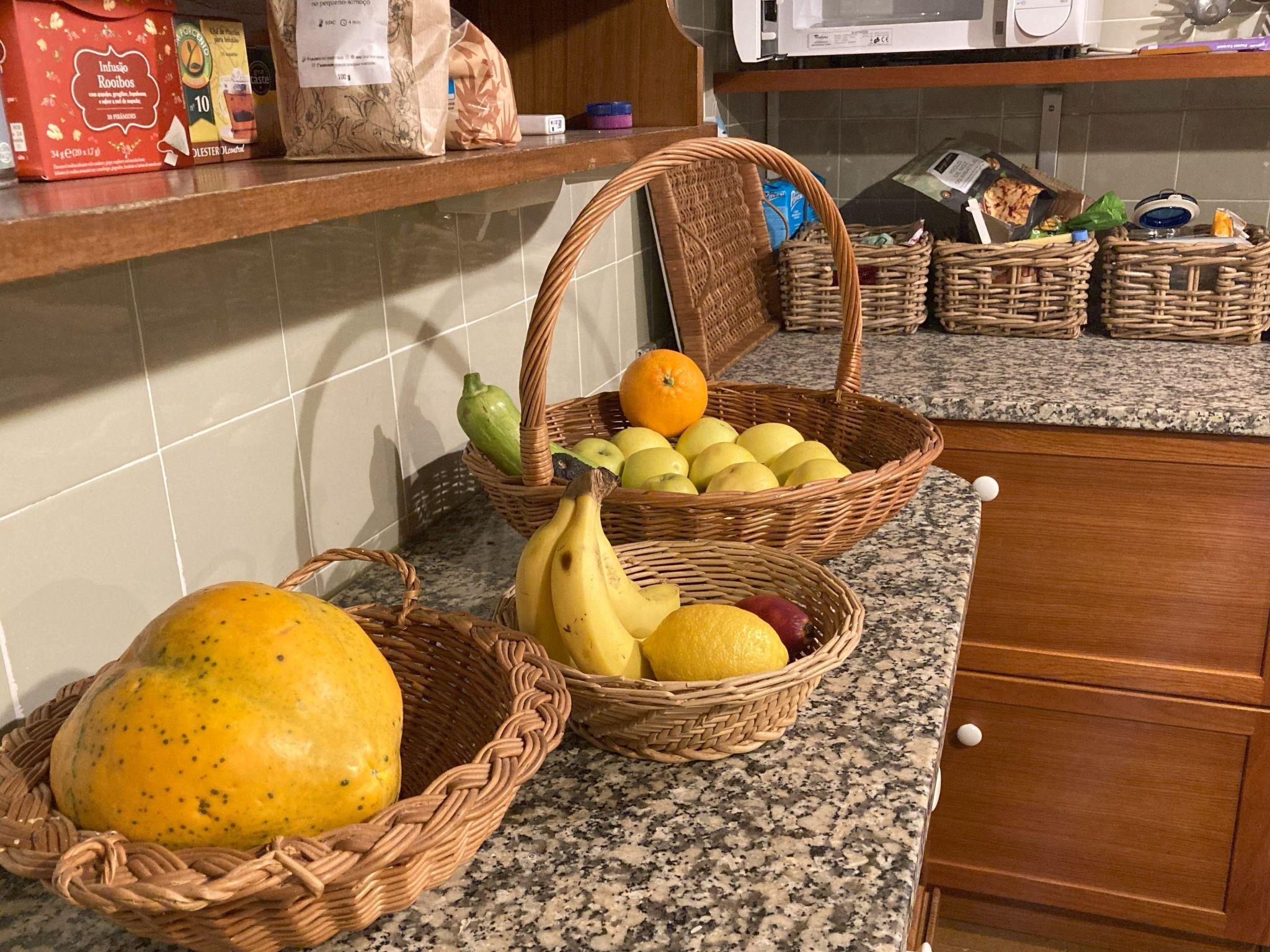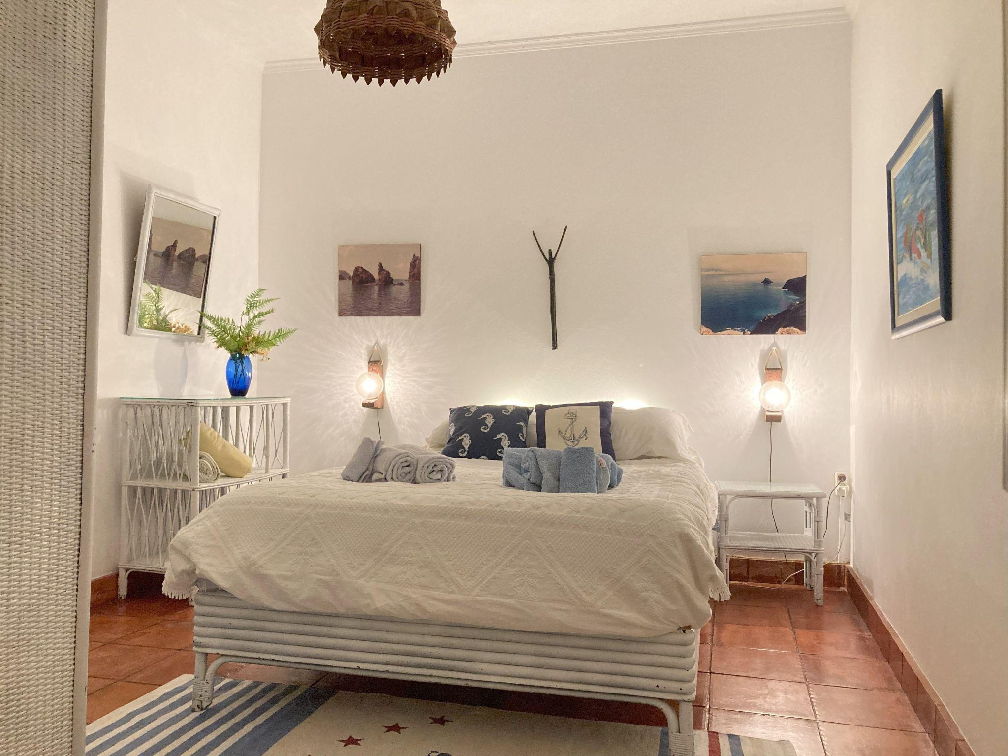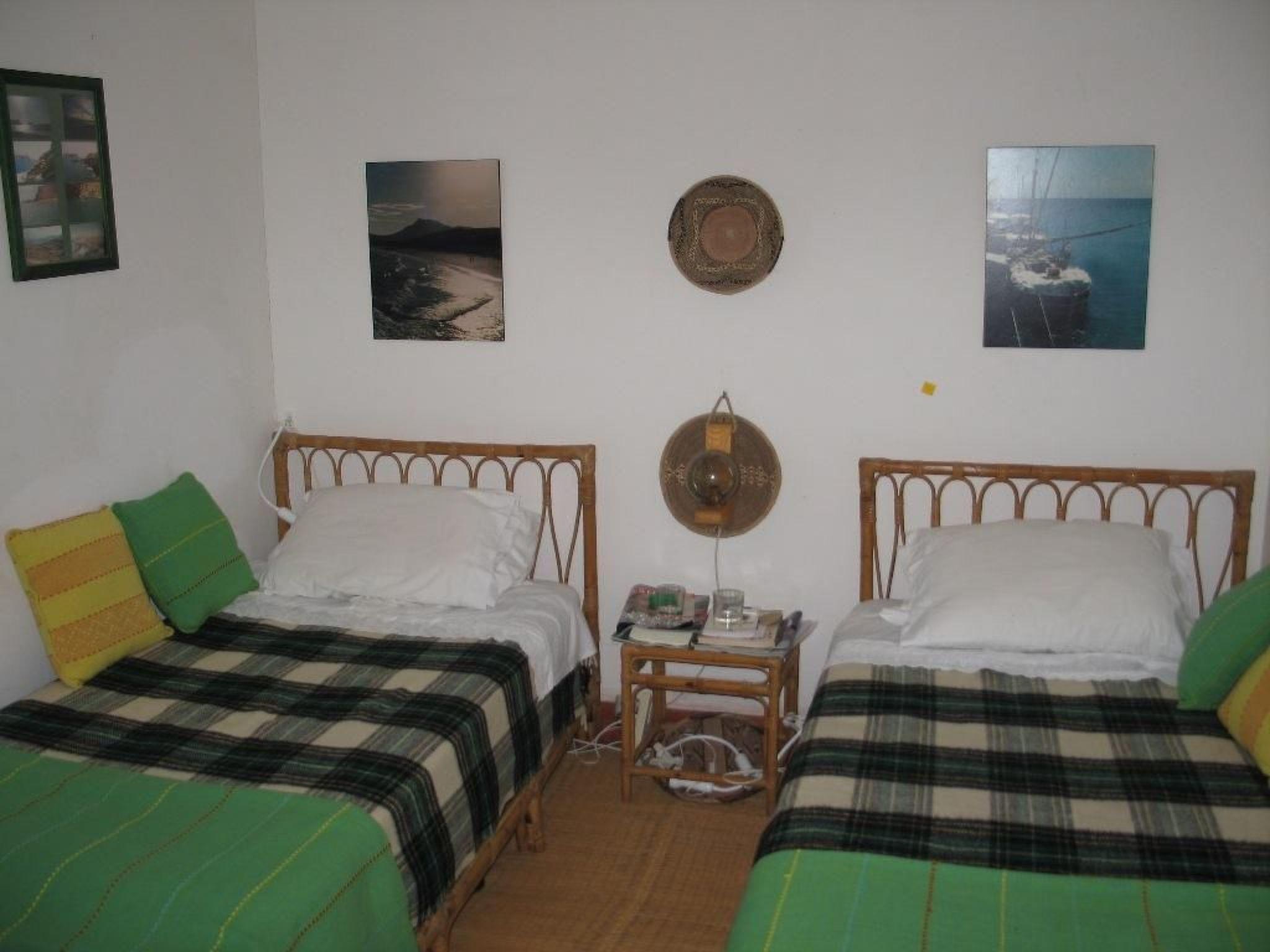 The villa provides a total of four bedrooms, spread over two units. The brown bedroom has a queensize bed and next to it there is the white bedroom with a single bed. Both bedrooms share a bathroom with a shower. The bamboo bedroom has two single beds and next to it there is the red bedroom with two single beds and a bunk bed for two children. These two bedrooms also share a bathroom with a bath and shower. The kitchen is fully-equipped with a gas stove, oven, fridge, freezer, dishwasher, microwave, toaster, Italian coffee machine and washing machine. The living and dining rooms have bamboo furniture and provide space for eight people.