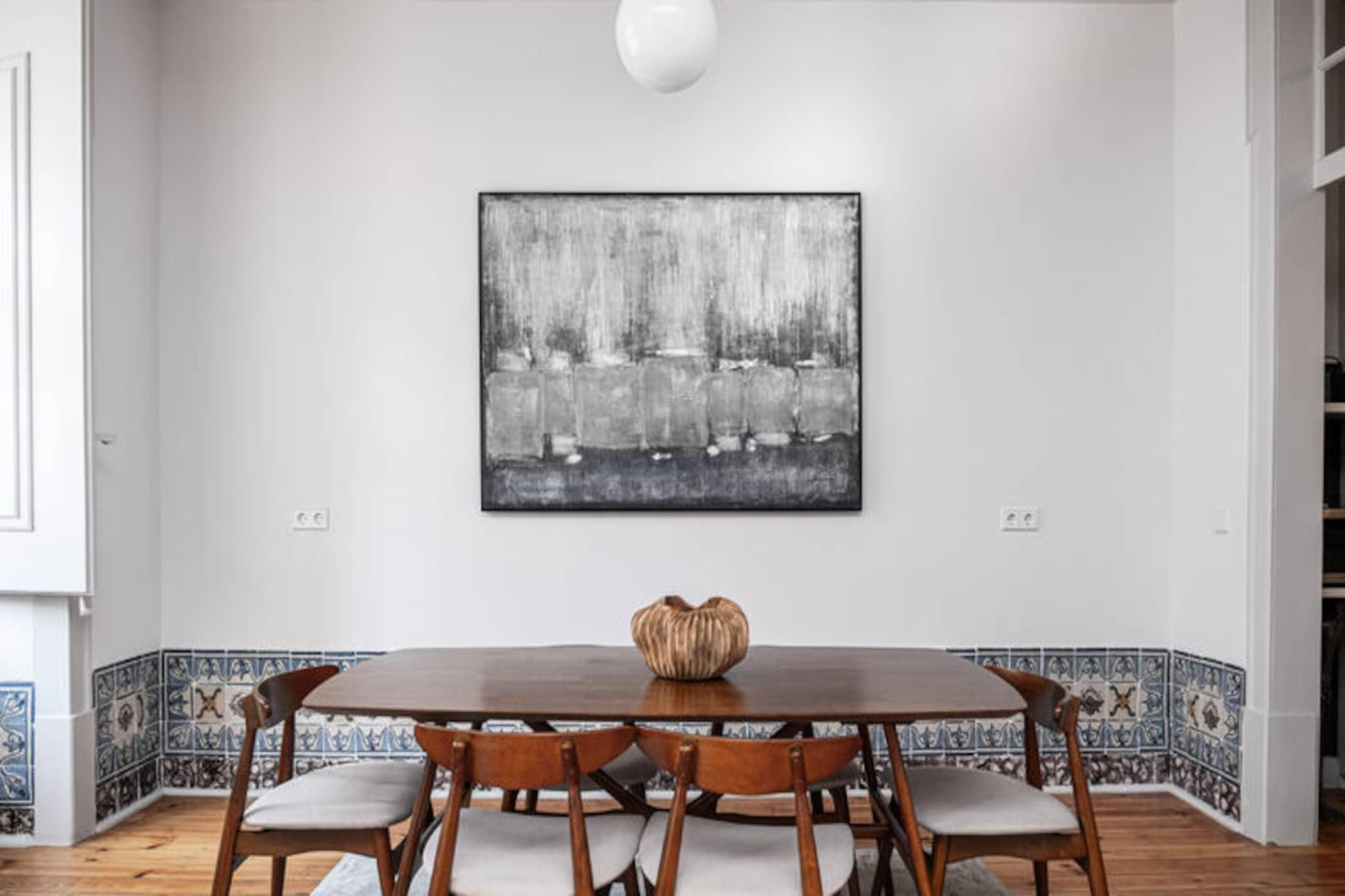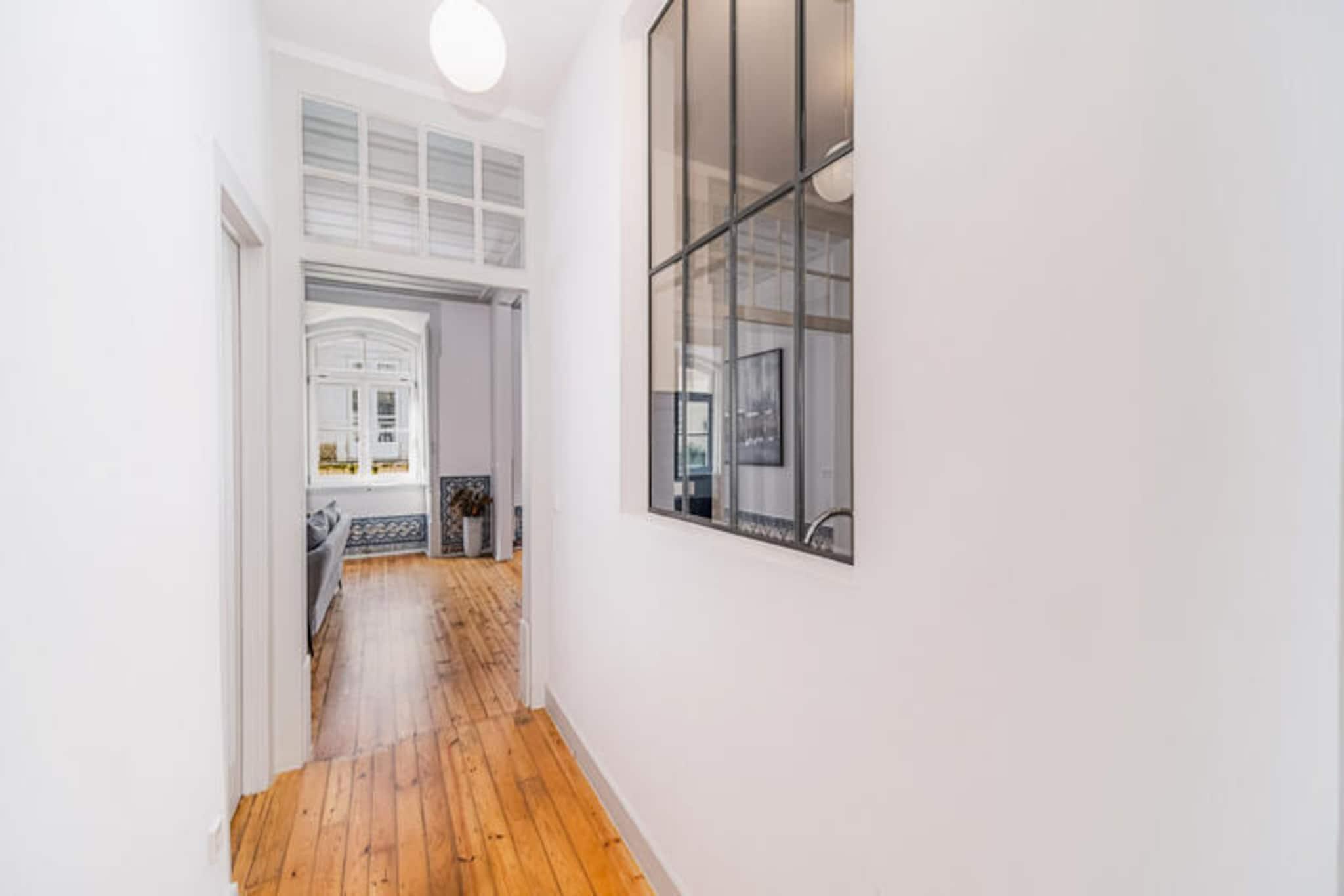 I hjertet af Lissabons pulserende historiske distrikt tilbyder denne elegante lejlighed en harmonisk blanding af moderne komfort og tidløs charme. Kun få skridt fra det ikoniske Chiado-kvarter finder du dig selv omgivet af brostensbelagte gader, traditionelle caféer og en livlig atmosfære, der indfanger essensen af ??Portugals hovedstad. Uanset om du udforsker den nærliggende Tejo-flod eller nyder lokale delikatesser på berømte restauranter, fordyber denne beliggenhed dig i byens rige kultur og historie. Denne smagfuldt møblerede lejlighed er på 130 m² og har komfortabel plads til op til seks gæster fordelt på tre rummelige soveværelser. Interiøret er gennemtænkt og kombinerer moderne stil med varme, indbydende detaljer. Det fuldt udstyrede køkken med induktionskogeplade, opvaskemaskine og kaffemaskine inviterer dig til at tilberede måltider med lethed, mens den hyggelige opholdsstue med satellit-tv og Wi-Fi sikrer afslapning efter en dag med sightseeing. Yderligere faciliteter såsom aircondition, vaskemaskine og elevator bidrager til dit opholds bekvemmelighed. Inden for gåafstand finder du alt, hvad du behøver: charmerende caféer som Nicolau Lisboa, lokale supermarkeder og metrostationen Baixa-Chiado, der giver nem adgang til resten af ??byen. For dem, der søger grønne områder, ligger Jardim do Príncipe Real og Jardim Botânico de Lisboa kun en kort køretur væk. Ikoniske vartegn, herunder det travle Praça do Comércio og det maleriske Alfama-distrikt, ligger også i nærheden og tilbyder uendelige muligheder for at udforske. Uanset om du er her for at nyde Lissabons historiske charme, det pulserende natteliv eller blot slappe af i et stilfuldt urbant tilflugtssted, er denne lejlighed den perfekte base for et uforglemmeligt ophold i en af ??Europas mest betagende byer.