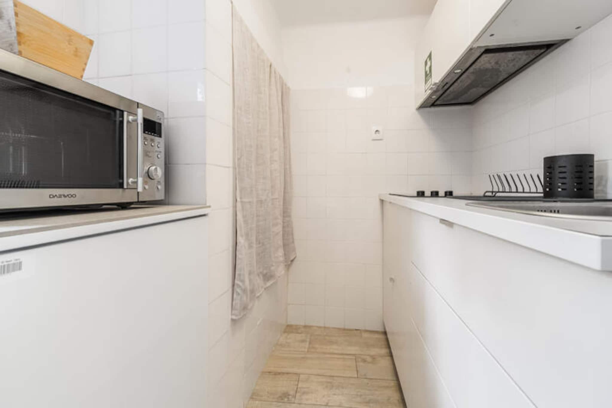 I hjertet af Lissabons historiske Alfama-distrikt inviterer denne charmerende lejlighed dig til at fordybe dig i byens pulserende kultur og tidløse skønhed. Omgivet af smalle brostensbelagte gader, traditionel Fado-musik og en fantastisk udsigt over Tagus-floden er dette det perfekte tilflugtssted for dem, der søger en autentisk Lissabon-oplevelse. Vågn op til byens blide summen, udforsk dens ikoniske sporvogne, og nyd den unikke blanding af gammeldags charme og moderne komfort. Denne hyggelige lejlighed på 30 m² er omhyggeligt designet til at rumme to gæster. Soveværelset tilbyder et roligt sted at hvile, mens opholdsstuen er både indbydende og moderne med aircondition, Wi-Fi og satellit-tv med flere sprogkanaler. Det fuldt udstyrede køkken med keramisk kogeplade, køleskab, mikrobølgeovn og brødrister giver dig mulighed for nemt at tilberede måltider, uanset om det er en hurtig morgenmad før sightseeing eller en romantisk middag for to. Yderligere faciliteter såsom strygejern og hårtørrer sikrer et behageligt ophold. Træd udenfor, og du vil befinder dig kun få øjeblikke fra Lissabons mest ikoniske attraktioner. Den berømte sporvognsrute 28, den travle metrostation Baixa-Chiado og den maleriske Tagus-flod ligger alle inden for gåafstand. Nyd lokale delikatesser på nærliggende restauranter som Restaurante Floresta das Escadinhas, eller nyd en kop kaffe på den historiske café A Brasileira. For dem, der ønsker at udforske yderligere, er Jardim Botânico, strandene i Carcavelos og den fantastiske naturpark Sintra-Cascais let tilgængelige. Uanset om du er her for at opdage Lissabons rige historie, forkæle dig selv med dens kulinariske lækkerier eller blot slappe af og nyde atmosfæren, tilbyder denne lejlighed den perfekte base for et uforglemmeligt ophold i Portugals betagende hovedstad.