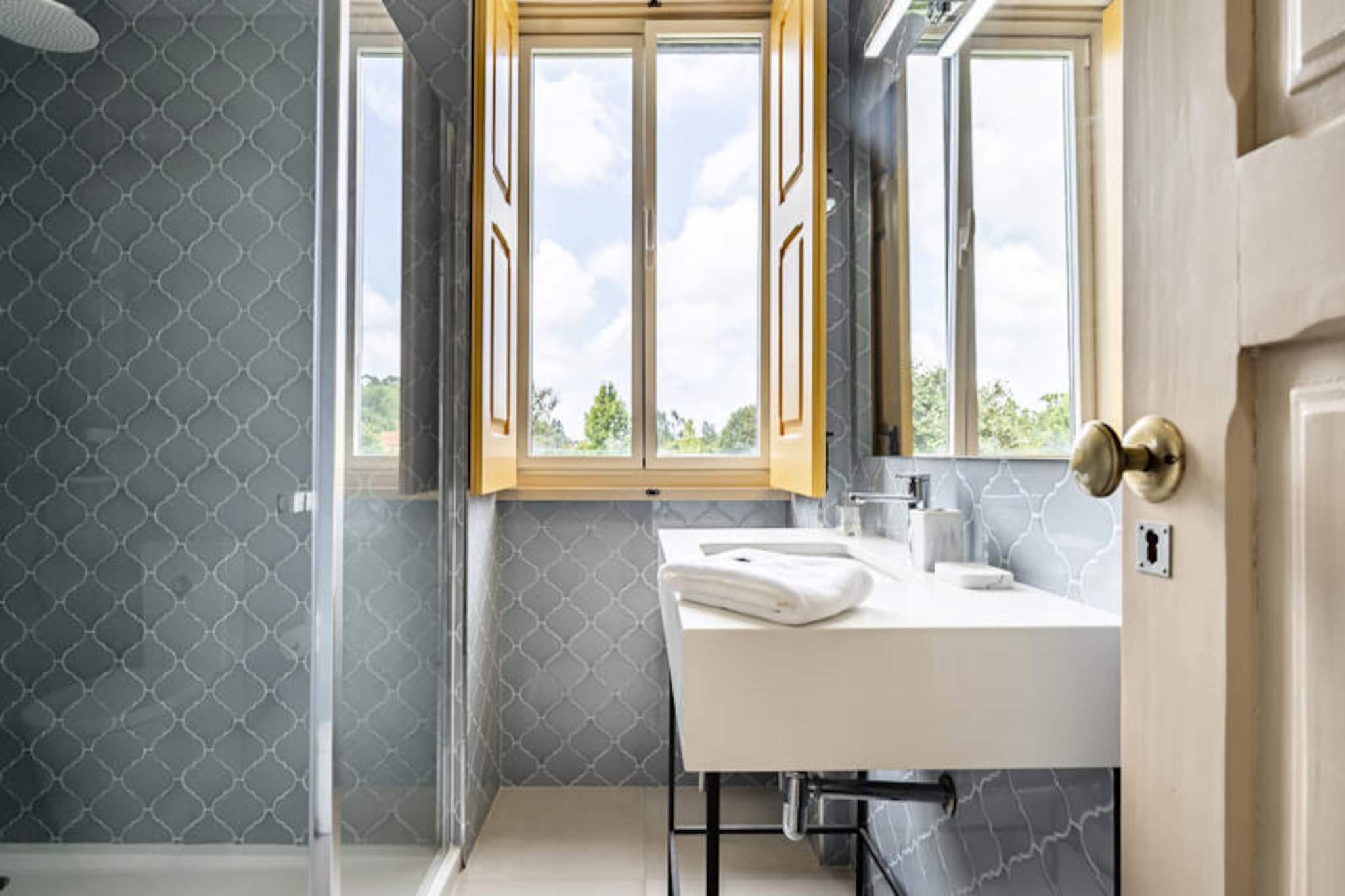 I hjertet af Santa Maria da Feira tilbyder denne charmerende villa et roligt tilflugtssted omgivet af frodige grønne områder og en fredfyldt landlig atmosfære. Med sine lyse og rummelige interiører er denne 200 m² store ejendom det perfekte tilflugtssted for familier eller grupper på op til otte gæster, der søger komfort og afslapning. Forestil dig at vågne op til den beroligende udsigt over haven, nyde morgenmaden på den store 200 m² store terrasse og planlægge en dag fyldt med udforskning og fritid. \n\nVillaen har fire smukt indrettede soveværelser, der sikrer afslappende nætter for alle. Det fuldt udstyrede køkken med induktionskogeplade, køleskab, ovn, mikrobølgeovn og opvaskemaskine inviterer dig til nemt at tilberede lækre måltider. Moderne faciliteter såsom Wi-Fi, satellit-tv med flersprogede kanaler, vaskemaskine, tørretumbler og grill gør dit ophold lige så bekvemt, som det er behageligt. Udendørsområdet med havemøbler og indhegnet område er ideelt til at slappe af i den friske portugisiske luft. \n\nVillaen ligger kun 1 km fra det historiske Castelo de Santa Maria da Feira og en række lokale restauranter og er perfekt placeret til at udforske regionen. Sandstrandene i Furadouro og Torreira ligger kun en kort køretur væk og byder på solrige dage ved havet. For naturelskere tilbyder de nærliggende naturparker S. Jacinto og Ria de Aveiro betagende landskaber og muligheder for udendørs eventyr. Golfelskere vil sætte pris på nærheden til Miramar Golfbane, kun 20 km væk. \n\nUanset om du er tiltrukket af Santa Maria da Feiras kulturelle rigdom, de uberørte strande eller den naturlige skønhed i de omkringliggende parker, er denne villa din port til en uforglemmelig portugisisk flugt. Slap af, udforsk og skab varige minder i disse idylliske omgivelser.