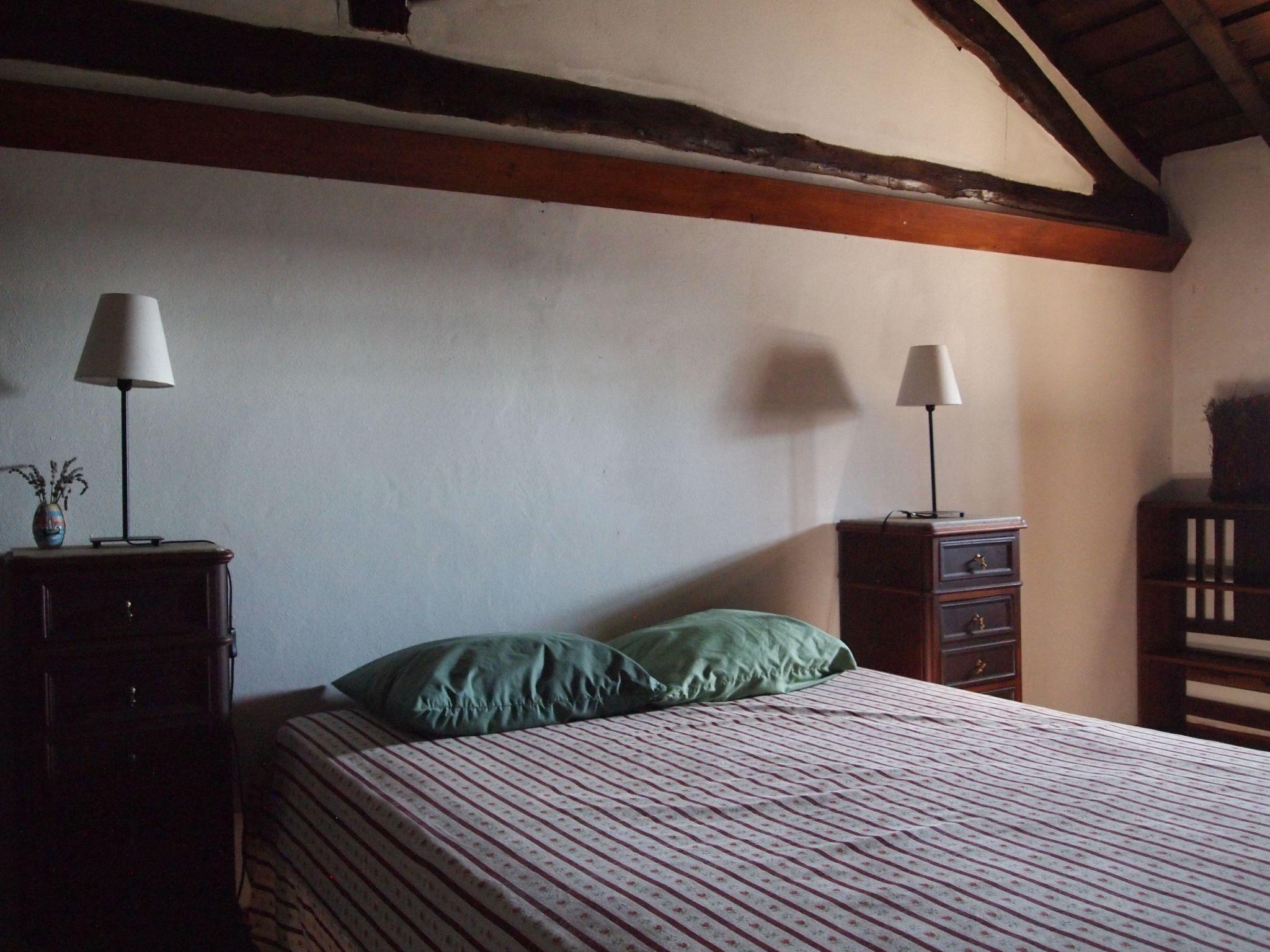 The residence spans a generous 142m² of living space within its 10,000m² property, comfortably accommodating up to 12 guests across four double bedrooms and an additional bedroom fitted with two bunk beds. Guests are welcomed to a cozy ambiance facilitated by two bathrooms, one featuring a shower and toilet and the other boasting a bath, toilet, and bidet. The country house is designed for relaxation and socializing, featuring a dining room and a charming living room equipped with a fireplace, setting the stage for memorable evenings.