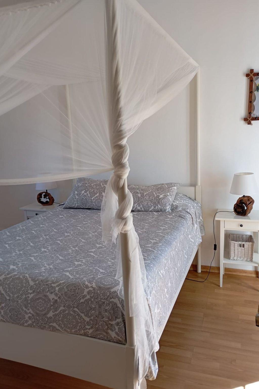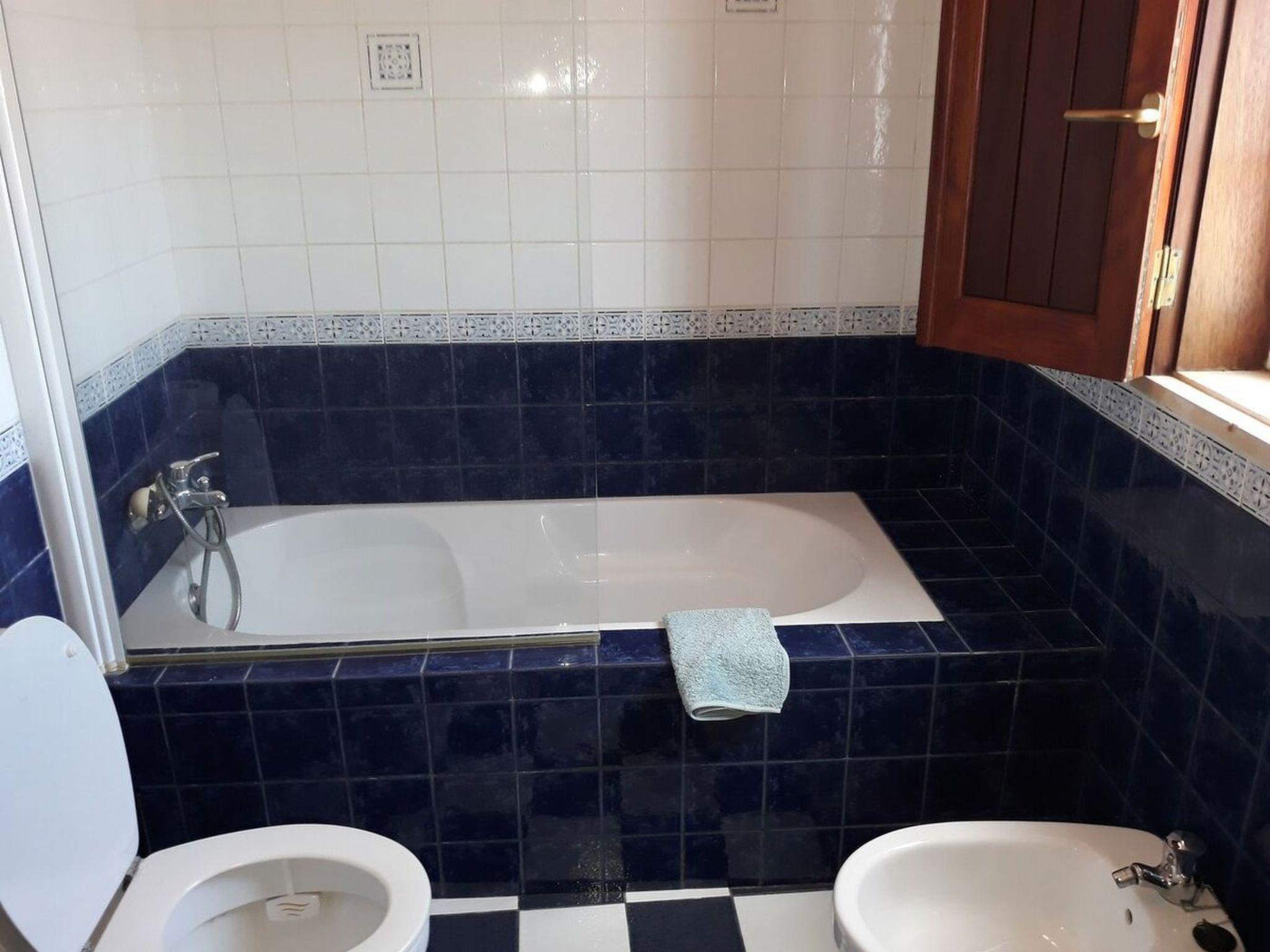 The holiday villa offers four bedrooms and can accommodate up to ten persons. It has a large living area, a fully equipped kitchen and two bathrooms.