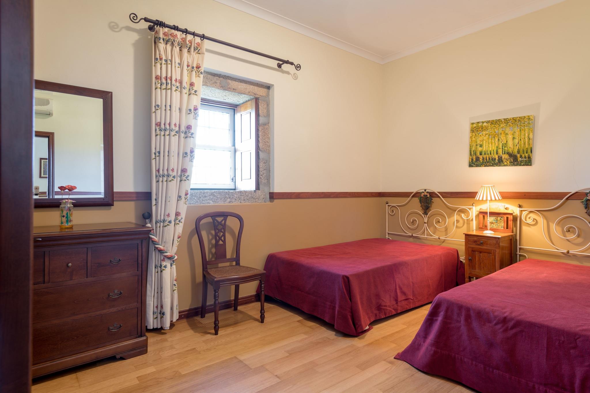 Casa do Caseiro er den midterste af tre parcelhuse på ejendommen; Det er egnet til op til 4 personer. Det plejede at være viceværtens hus (caseiro) og det er her, hvor huset får sit navn fra. Du kommer ind i huset gennem den lukkede terrasse. Der er to soveværelser, der grænser op til den rummelige stue, den ene med en dobbeltseng og den anden med to enkeltsenge. Fra køkkenvinduet har du udsigt over vinmarkerne og oliventræet lunde, der omgiver quinta. Badeværelset er veludstyret med badekar / bruser, håndvask, toilet og bidet. Til dine daglige dagligvarer og restauranter kan du gå til byer som Torre de Moncorvo (10 minutter) og Vila Flor, "hovedstaden i olivenolie ". I Pocinho (20 minutter) kan du komme på toget og nyde en fantastisk tur gennem Douro-dalen. Vandrere kan nyde det nærliggende naturreservat Vale do Yua eller det nærliggende naturreservat Douro Internacional kan finde vandrestier online). For en dag med kultur: besøg byen Vila Real med sit berømte palads og haverne Casa de Mateus (fra rosé). Quinta er også en perfekt base for at opdage denne varierede, stadig uopdagede område af Trás-os-Mo ntes; man kan prøve en slotsrute eller besøge parken Vale de Côa med sine forhistoriske hulmalerier.