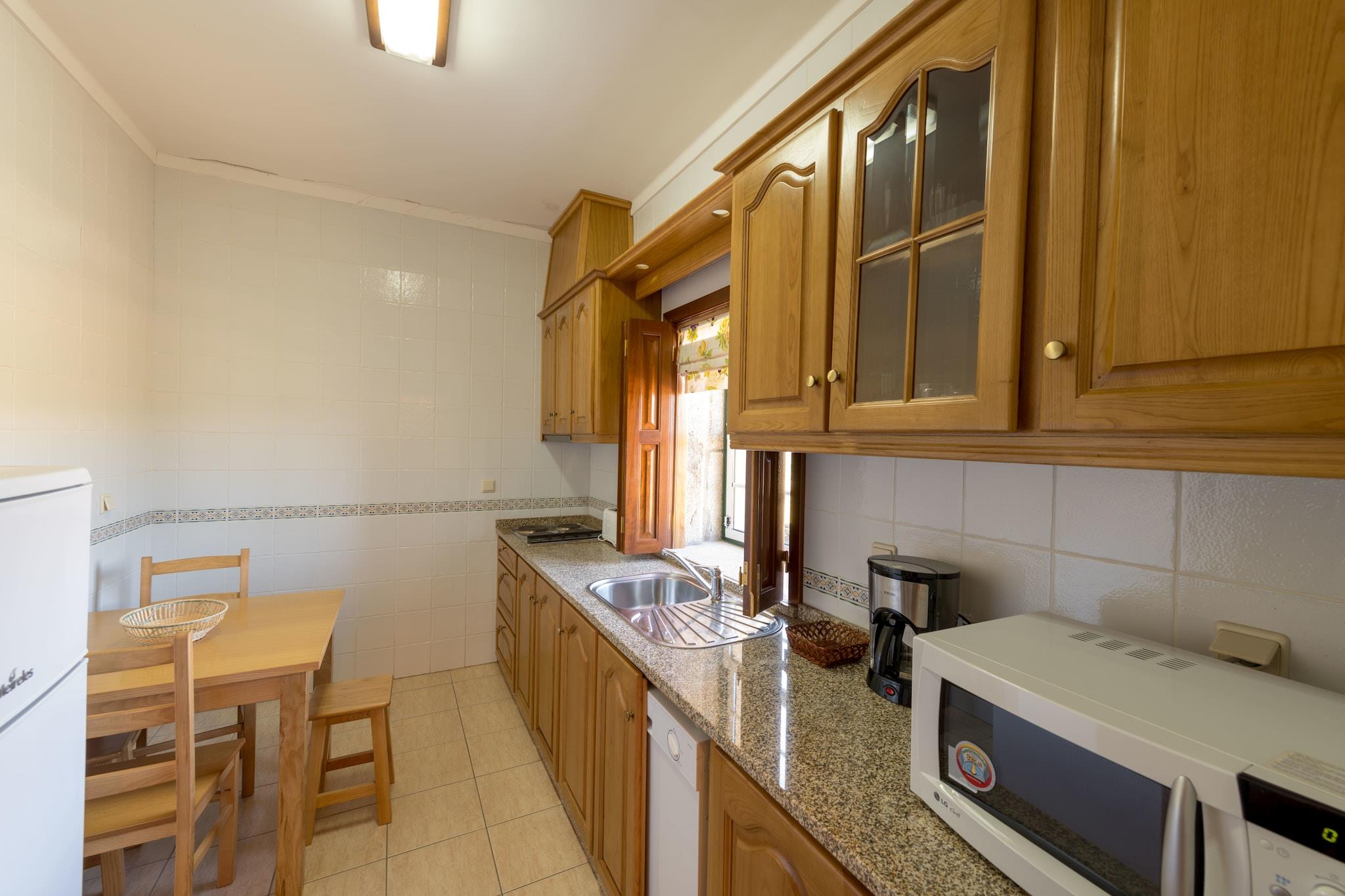 Casa do Alambique har en smuk rolig beliggenhed på ejendommen. Det er en af tre parcelhuse på quinta og er egnet til op til 4 personer. Du kommer ind i huset via den lukkede terrasse, et godt sted at spise ude og nyde solen. Stuen er rummelig og lys. Fra køkkenet bag stuen har du en smuk udsigt over vinmarkerne og oliventræerne. Der er to soveværelser, hver med eget badeværelse. Et soveværelse har en dobbeltseng og de to andre enkeltsenge. Casa do Alambique (distillery) får sit navn fra, at dette er stedet hvor aguardente (den portugisiske eau-de-vie) blev lavet. For dine daglige dagligvarer og restauranter kan du gå til byer som Torre de Moncorvo ( 10 minutter) og Vila Flor, "hovedstaden i olivenolie". I Pocinho (20 minutter) kan du komme på toget og nyde en betagende tur gennem Douro-dalen. Vandrere kan nyde det nærliggende 25.000 hektar naturreservat Vale do Yua eller det lille længere væk naturreservat Douro Internacional (du kan finde vandrestier online). For en dag med kultur: besøg byen Vila Real med sit berømte palads og haverne Casa de Mateus (fra rosé). Quinta er også en perfekt base for at opdage dette varierede, stadig uopdagede område af Trás-os-Montes; man kan prøve en slotsrute eller besøge parken Vale de Côa med sine forhistoriske hulmalerier.