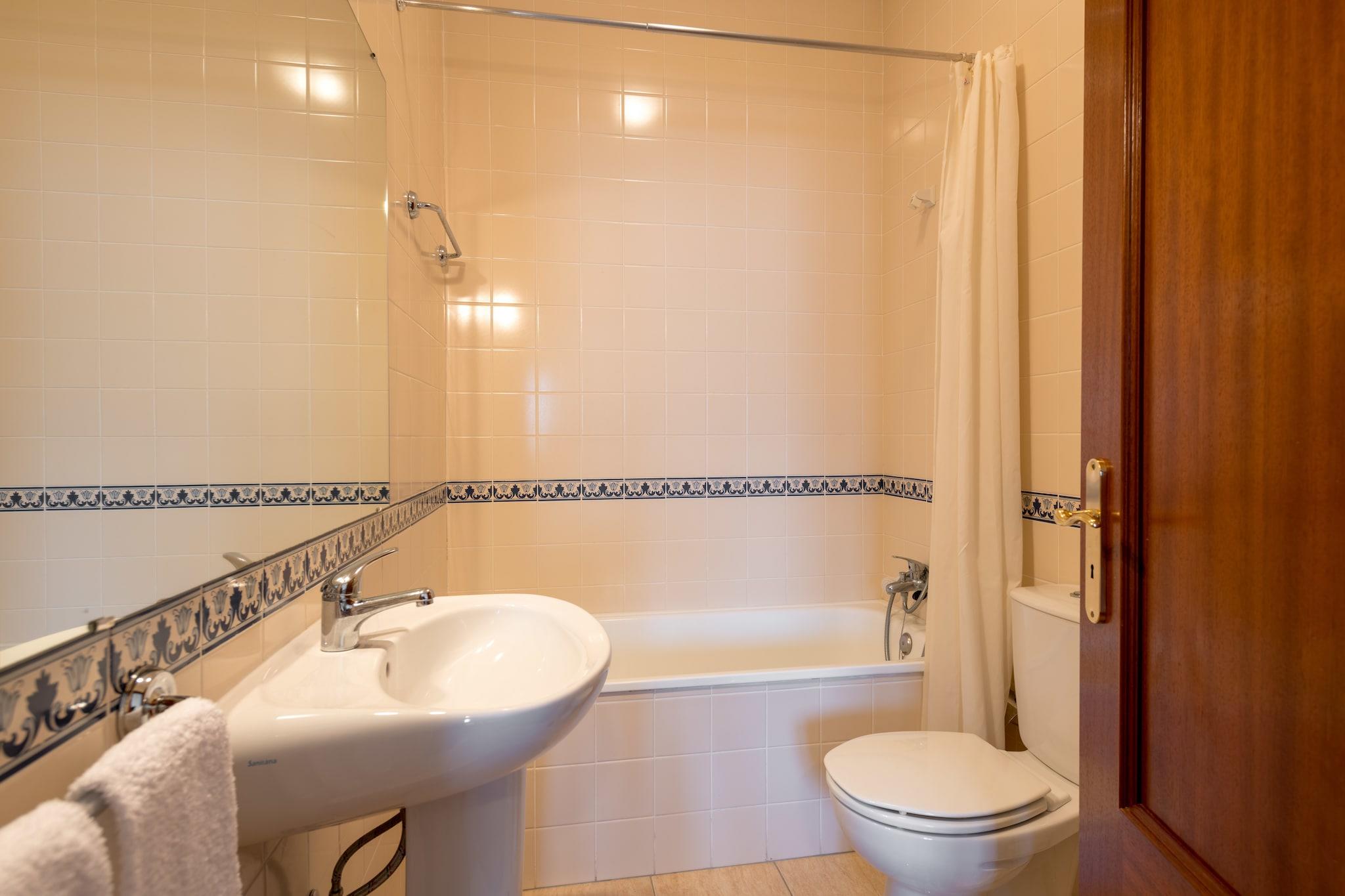 Stueetage: (Stue(Fjernsyn, spisebord, pejs, sofahjørne, DVD-afspiller), Køkken(brødrister, komfur(Komfur med fire kogeplader, elektrisk), kaffemaskine(kaffetragt), mikrobølgeovn, opvaskemaskine , køle-fryseskab), Soveværelse med badeværelse(2x enkeltseng, badekar med bruser, håndvask, toilet, bidet), Soveværelse med badeværelse(køjeseng, badekar med bruser, håndvask, toilet, bidet)) vaskemaskine(deles med andre gæster), varme(central), klimaanlæg, terrasse(privat, indhegnet, 28 m2), have(deles med andre gæster), havemøbler, grill, liggestole, swimmingpool(deles med andre gæster, indhegnet, inkl. separat børne swimmingpool (maks. dybde 50 cm), 14 x 6 m., opened from Jun upto and including Sep)