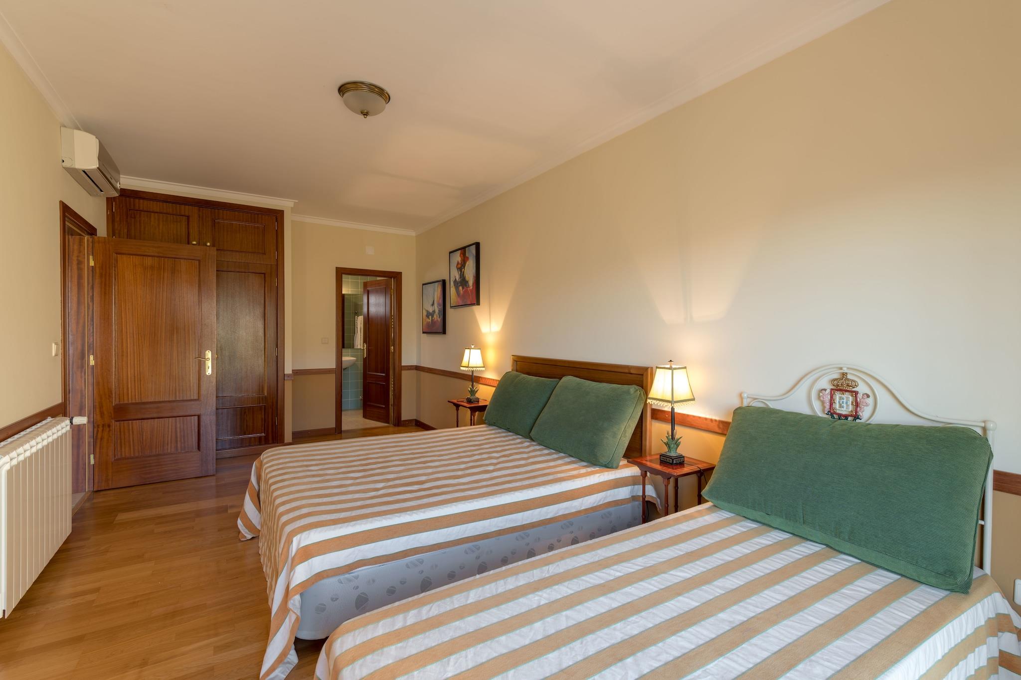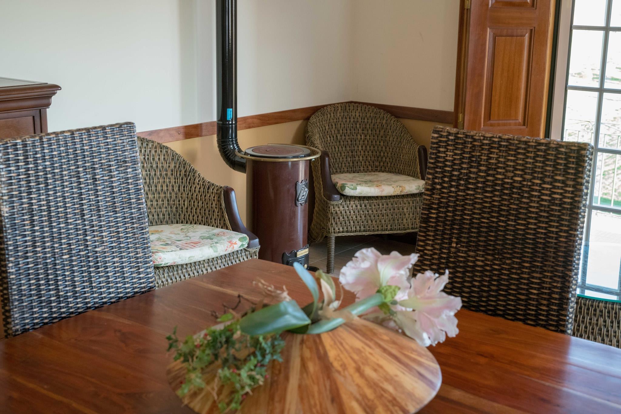 Hvorfor bo her? Nyd en ferie i Vila Flor i Douro Superior-regionen i det nordøstlige Portugal i dette hyggelige sommerhus med familie eller venner. Det har en fælles swimmingpool, hvor man kan køle af på en varm dag, med en separat del til børnene. Det tilbyder også en smuk udsigt over dalen og de omkringliggende bjerge. Ting at lave i nærheden Mens du er i den portugisiske olivenoliehovedstad, må du ikke gå glip af at købe olivenolie her. Oplev det storslåede landskab i Porto og Alto Douro vinregionen på en guidet jeeptur. Porto kan udforskes yderligere på en dagstur. Hvad du kan forvente af stedet Denne selvforplejningsbolig i Portugal har centralvarme og aircondition. Der er en grill, hvor I kan tilbringe aftenerne på den private terrasse. I den fælles have kan I nyde en gåtur eller snakke sammen. 3 kæledyr er tilladt her. Mere til dit ophold Offentlig transport findes 15 km væk. Det er godt at leje en bil. Indtjekningstiderne er kl. 16-18. Udtjekningstiderne er kl. 9-10.