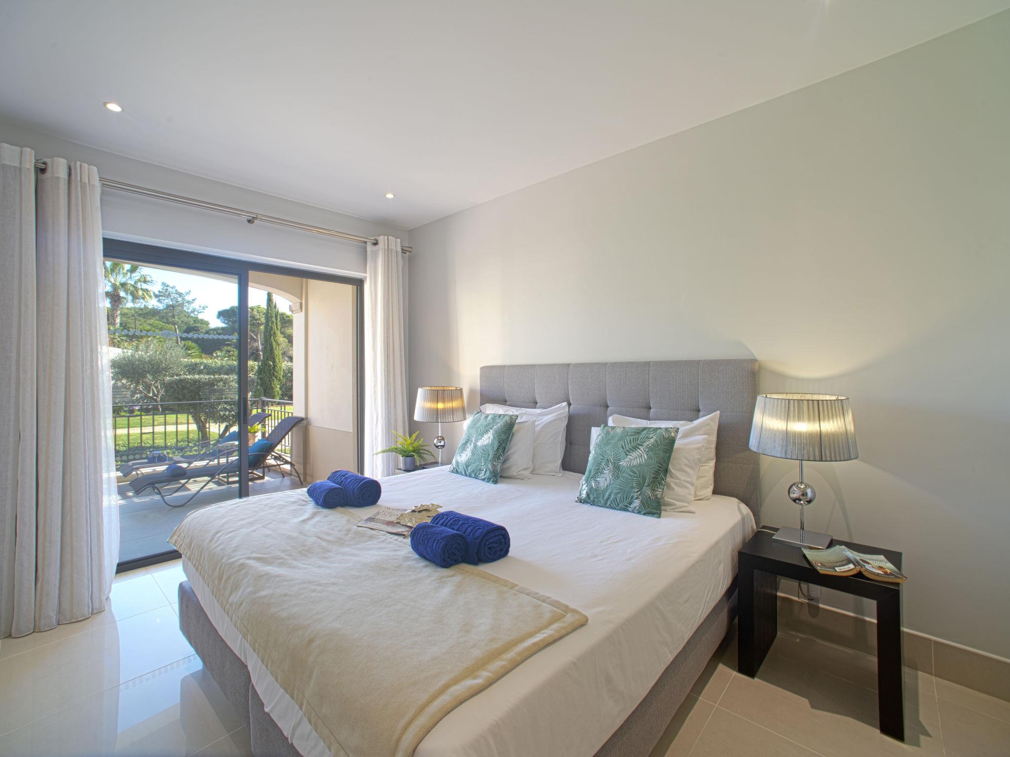 "Pine Hills Pérola", 3-room apartment 122 m2. Modern and cosy furnishings: living/dining room with 1 sofabed (140 cm, length 190 cm), TV, international TV channels and flat screen. Exit to the terrace. 1 room with 2 beds (90 cm, length 200 cm), shower/WC, air conditioning and forced-air heating. Exit to the terrace. 1 room with 1 french bed (180 cm, length 200 cm), bath/WC, double hand-basin, air conditioning and forced-air heating. Exit to the terrace. Kitchen (oven, dishwasher, 4 ceramic glass hob hotplates, toaster, kettle, microwave, freezer, electric coffee machine, Capsules for coffee machine (Nespresso Not Incl)). Sep. WC. Terrace furniture, deck chairs (2). View of the garden. Facilities: washing machine, iron, baby cot for up to 2 year olds, hair dryer. Internet (WiFi, free). Parking space n L69 (roofed). Please note: suitable for families. Non-smokers only. Fire extinguisher. 22790/AL