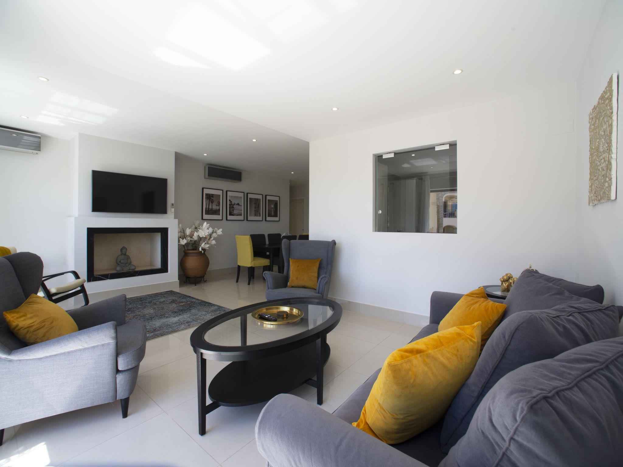 "Pine Hills Ambar", 3-room apartment 123 m2, on the upper ground floor. Modern and cosy furnishings: living/dining room with 1 sofabed (140 cm, length 190 cm), dining table, TV, international TV channels, flat screen, air conditioning and forced-air heating. Exit to the terrace. 1 room with 1 french bed (160 cm, length 190 cm), shower/WC, air conditioning and forced-air heating. 1 room with 1 french bed (180 cm, length 195 cm), bath/WC, double hand-basin, air conditioning and forced-air heating. Exit to the terrace. Kitchen (oven, dishwasher, 4 ceramic glass hob hotplates, microwave, freezer, electric coffee machine, Capsules for coffee machine (Delta Q Not Incl)). Sep. WC. Small terrace 40 m2. Terrace furniture, deck chairs (2). Side view of the swimming pool and the garden. Facilities: washing machine, iron, children's high chair, baby cot for up to 2 year olds, hair dryer. Internet (WiFi, free). Parking (roofed), garage space n L33 + L49. Please note: suitable for families. Non-smokers only. Fire extinguisher. 87399/AL