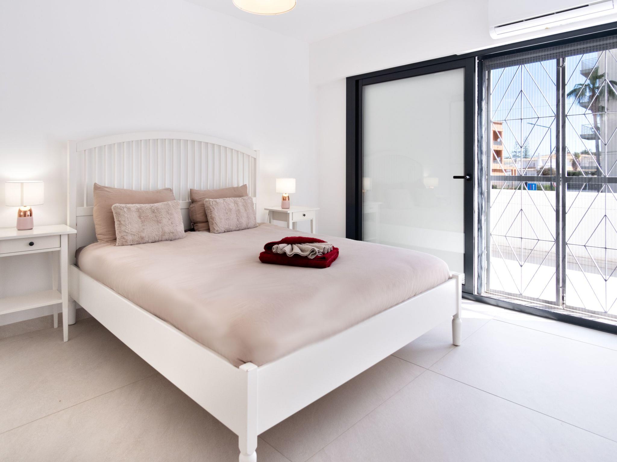 Step outside to savour the Algarve sun from the villa's terraces. The property flaunts both a front terrace giving enchanting garden views and a more secluded roof terrace, ideal for soaking up the sun in privacy. The communal garden provides a lush backdrop for relaxation, enabling you to enjoy the outdoors as much as the indoor comforts. All bedrooms offer access to their own patio area, blending the beauty of Algarve's outdoors with the villa's homey ambiance.
