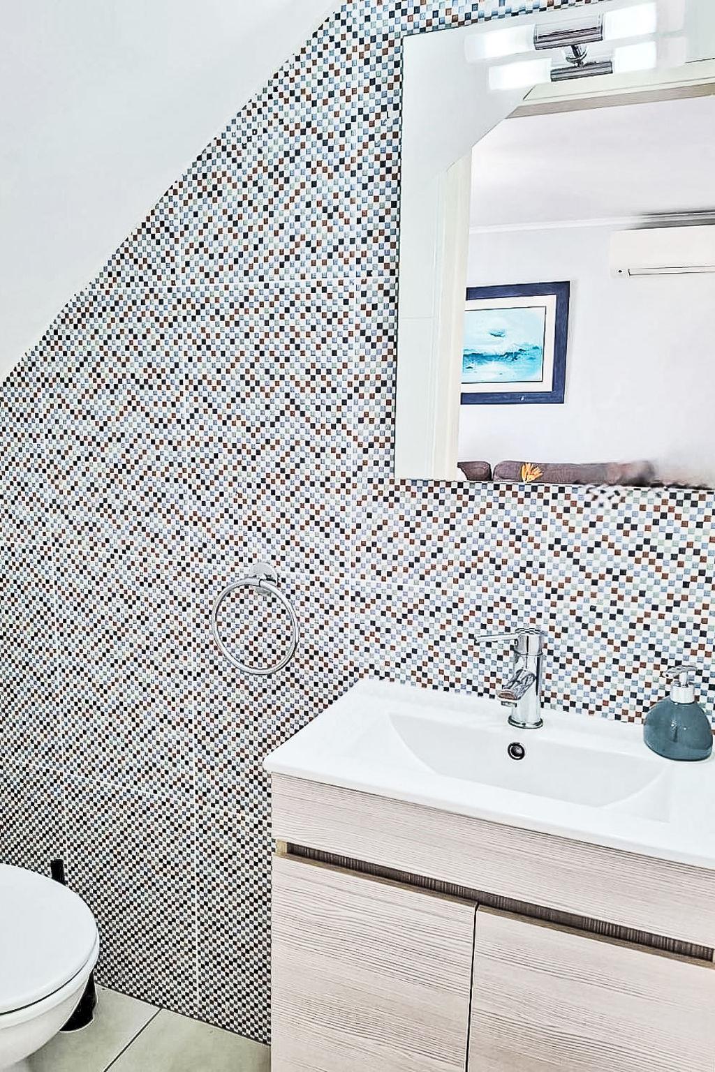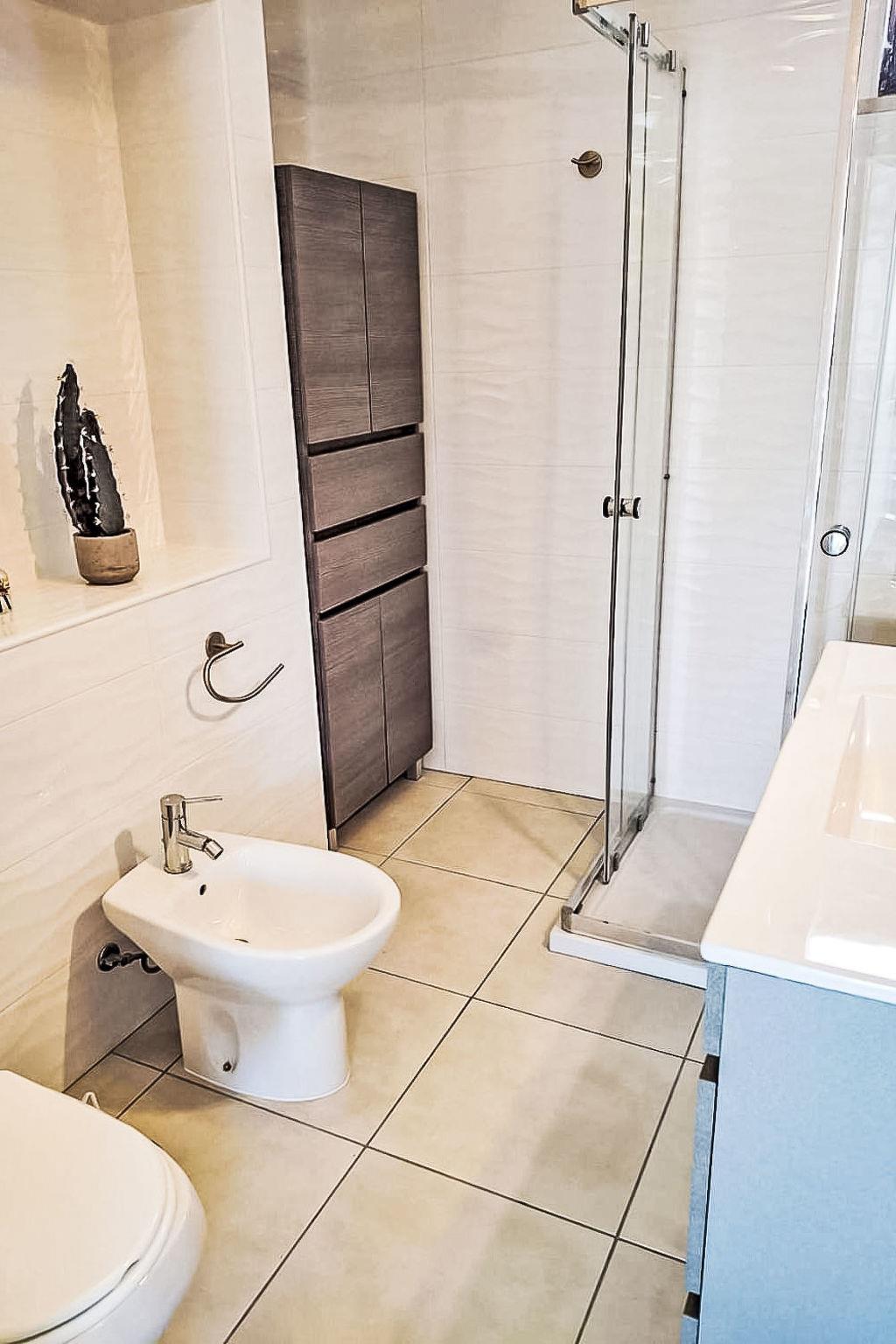 "Villa Medusa", 3-room semi-detached house 90 m2 on 2 levels. Comfortable and cosy furnishings: open living/dining room with dining table, cable TV, flat screen, air conditioning and forced-air heating. Exit to the terrace. Open kitchen (oven, dishwasher, 4 ceramic glass hob hotplates, toaster, kettle, microwave, freezer, electric coffee machine, Capsules for coffee machine (Dolce Gusto not incl)). Sep. WC. Upper floor: 2 rooms, each room with 1 french bed (160 cm, length 200 cm), air conditioning and forced-air heating. Shower/WC. Terrace furniture, barbecue. Facilities: washing machine, iron, children's high chair, baby cot for up to 2 year olds, hair dryer. Internet (WiFi, free). Please note: suitable for families. No lift. 162581/AL