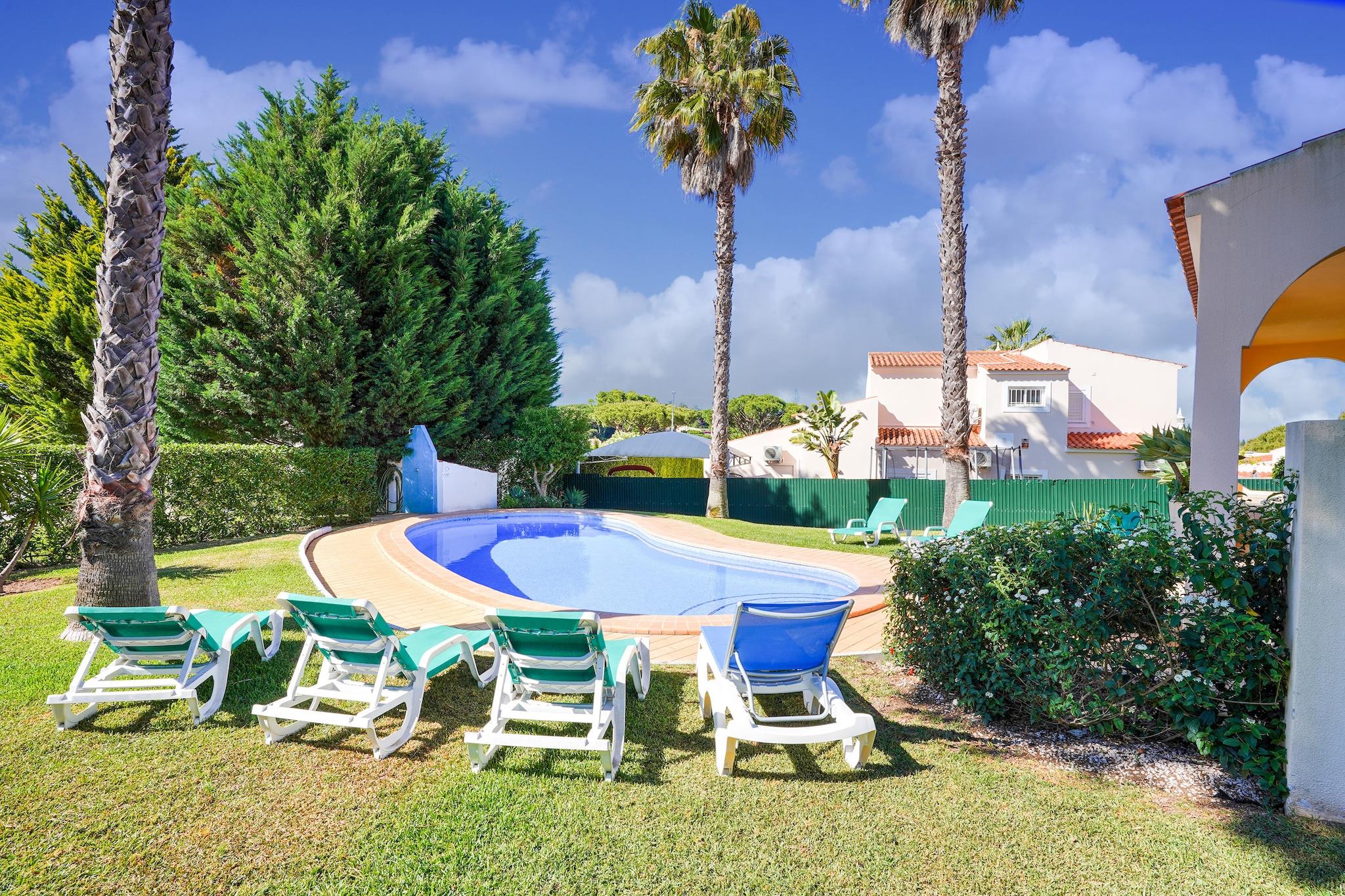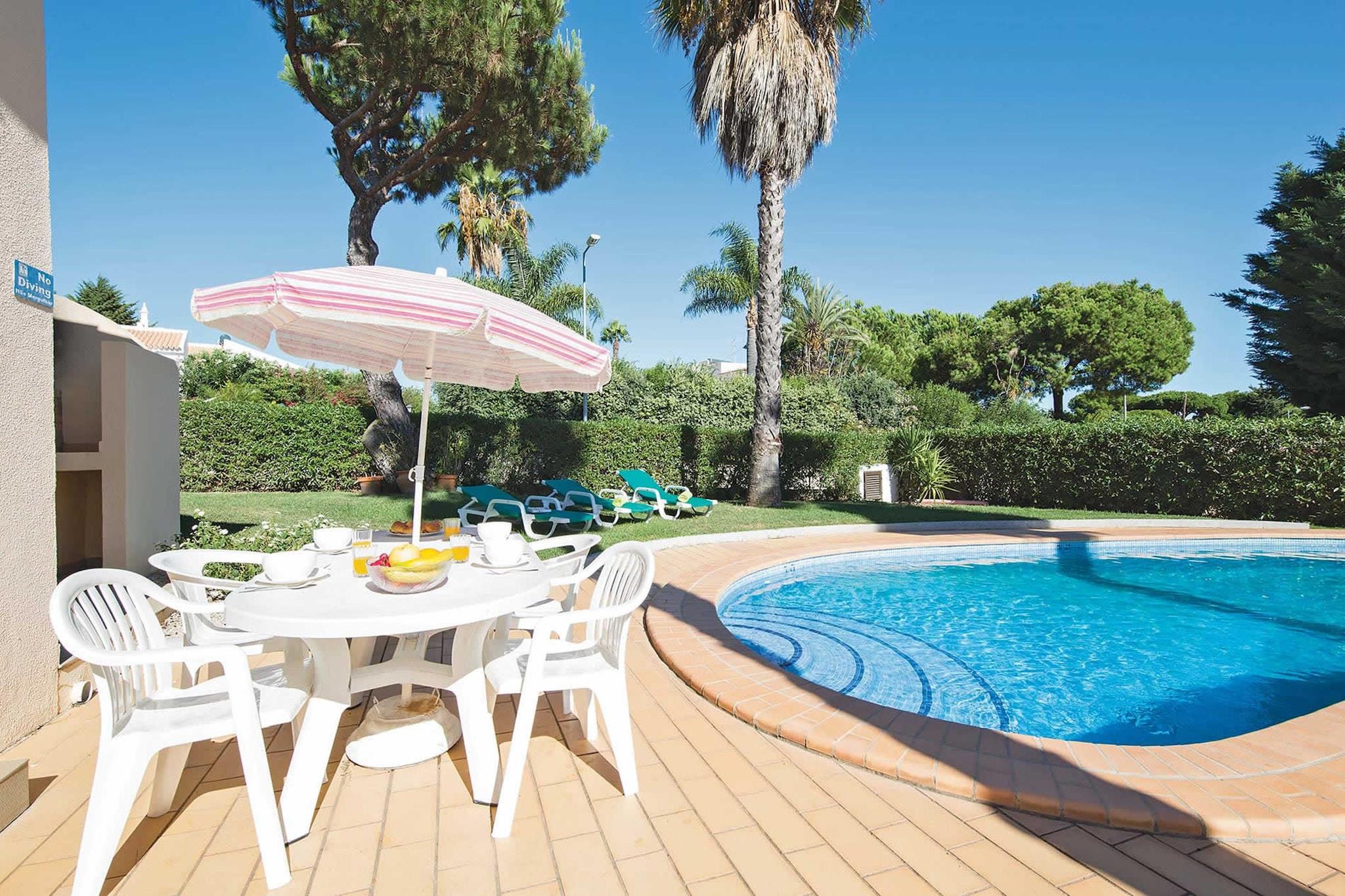 Denne smukke villa ligger i et eksklusivt boligområde i Vilamoura tæt på forskellige golfbaner og et internationalt sportsakademi. Villa Patricio er meget veludstyret. I stuen med pejs og døre til haven. Det moderne køkken er udstyret med alle apparater, inklusive en vaskemaskine. Der er også et stort spisebord til at være i stand til at spise omfattende sammen. Der er tre soveværelser og to badeværelser. To soveværelser har balkondøre. Der er en dejlig have med en stor græsplæne, en smuk privat swimmingpool med liggestole rundt omkring, et udendørs bruser og der er flere terrasser. Der er også en balkon / tagterrasse, så du kan nyde udsigten fra et højere niveau med et glas vin.Der er plads nok til at parkere din bil, hvis det ønskes, selv i skyggen under carport.