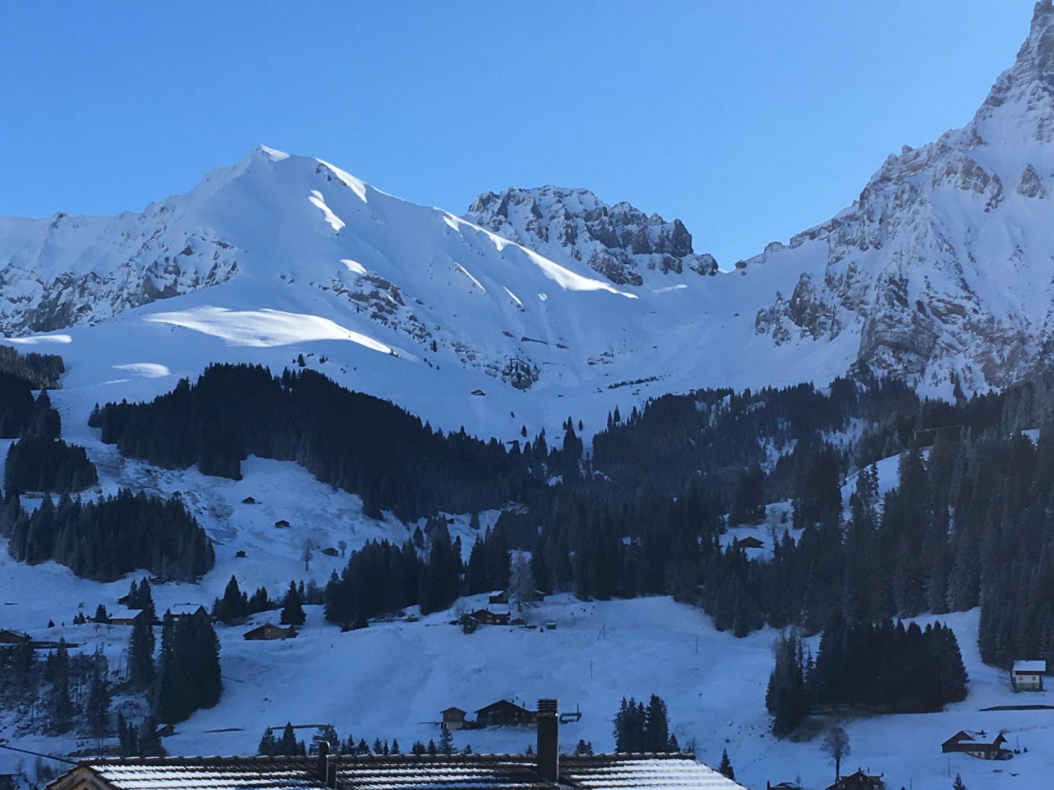 30 m2. More information by the provider: Beautiful, renovated 1.5 room apartment for 2 persons (30m2) in a chalet with 2 apartments, in a central location and in the immediate vicinity of the leisure and sports arena and the bus station. Living room and bedroom with a double bed, sitting area, cable TV and dining table. Kitchen with oven, coffee machine, raclette grill and fondue set. 1 bathroom with shower / WC and hairdryer. Balcony with beautiful mountain view, parking at the house. No pets, non smoking apartment.