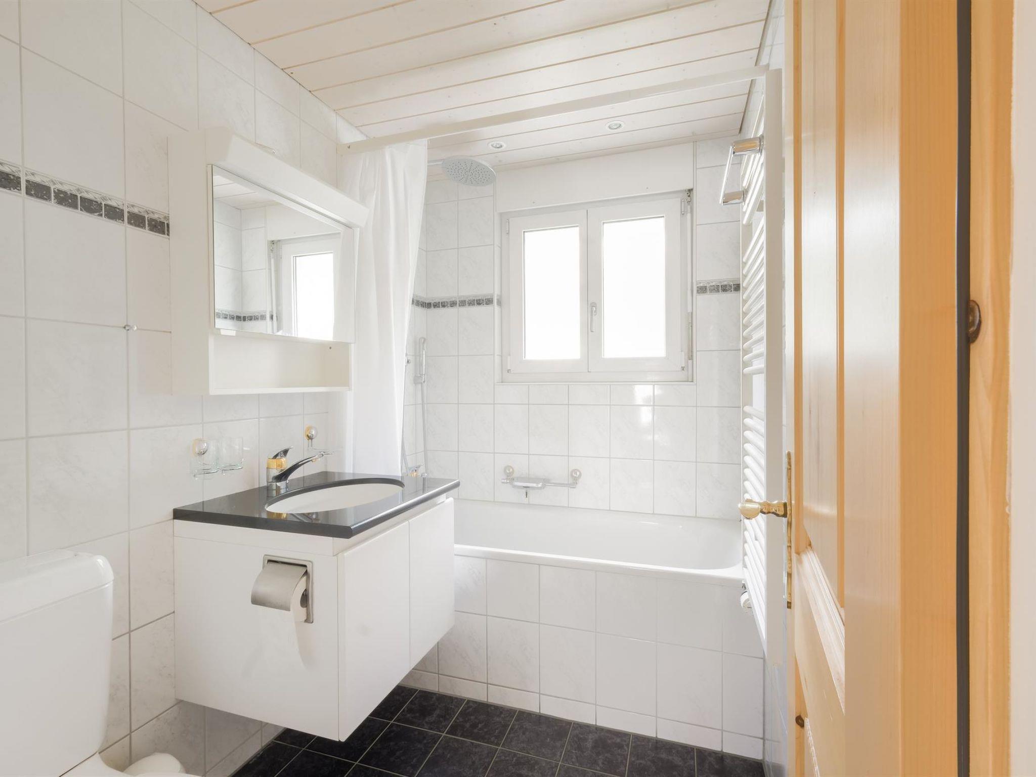 87 m2. More information by the provider: The 4.5-room flat is located at Ruheweg 9 in 3715 Adelboden in a central but quiet location below the Hotel Crystal. Chalet Specht was built in 1969 and comprises a total of two floor units of different sizes. The flat is located on the top floor and is accessible from the outside. Integrated into the flat is an entrance hall with wardrobe, a separate kitchen with a practical hatch to the dining area, a spacious living area with a fireplace and sitting area, an adjoining dining area, a large bedroom with double bed and two further rooms with single beds and a bunk bed. The wet area offers a bathtub with shower, washbasin, towel dryer and toilet. A spacious balcony over the south-east side extends the living area in the warm seasons. Nature lovers can enjoy the surrounding area, the garden and the forest to the full. The outdoor area is also an absolute paradise for children. In just a few minutes' walk you can be in the heart of Adelboden - the village centre - and reach the mountain railways, restaurants, bars, bakery, butcher's shop etc.