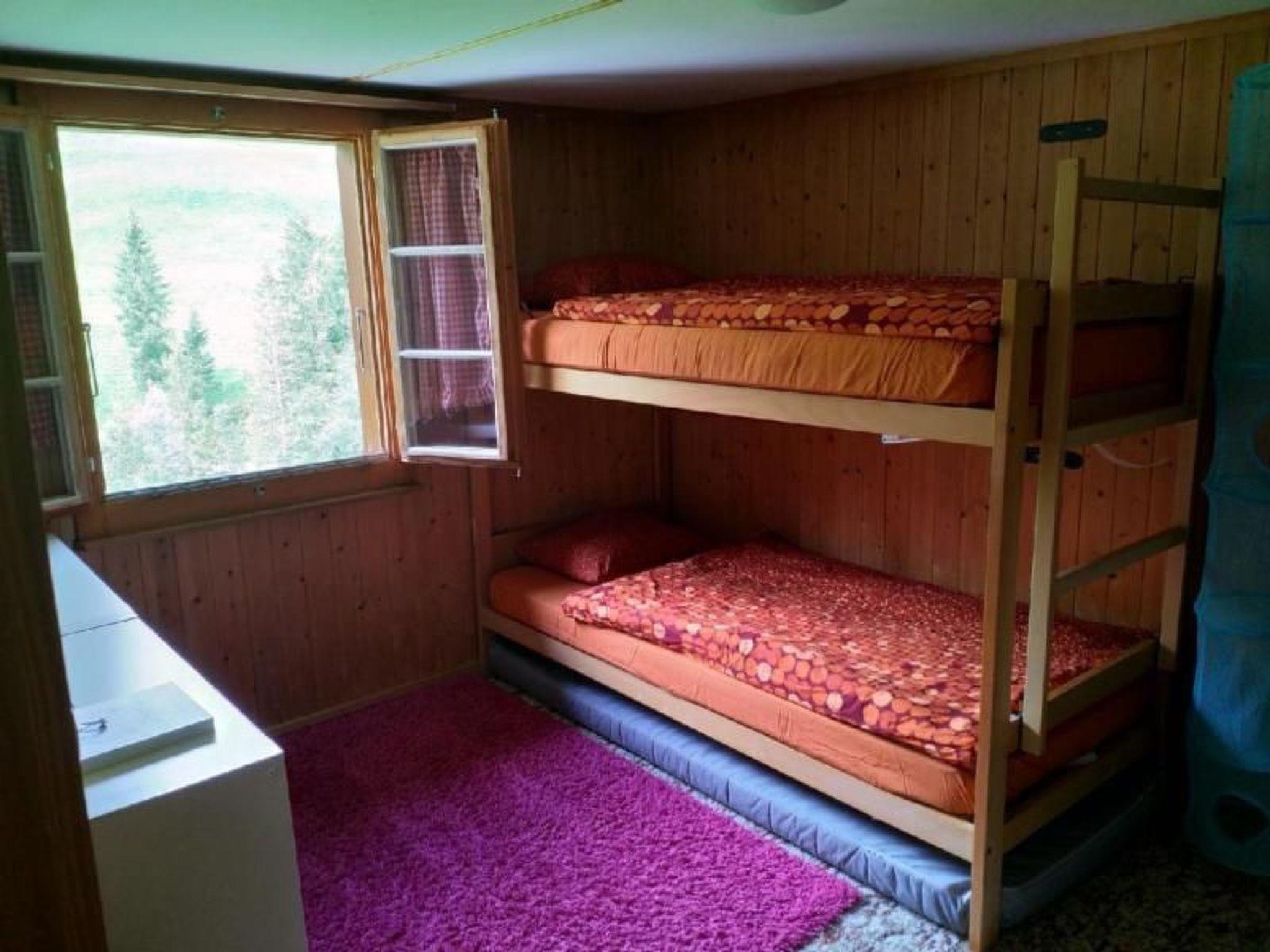 The 5 1/2 room holiday home is simply but cosily furnished and extends over two floors. On the ground floor there is a living room, 1 bedroom, kitchen and bathroom. On the second floor there are two bedrooms with 2 bunk beds each.