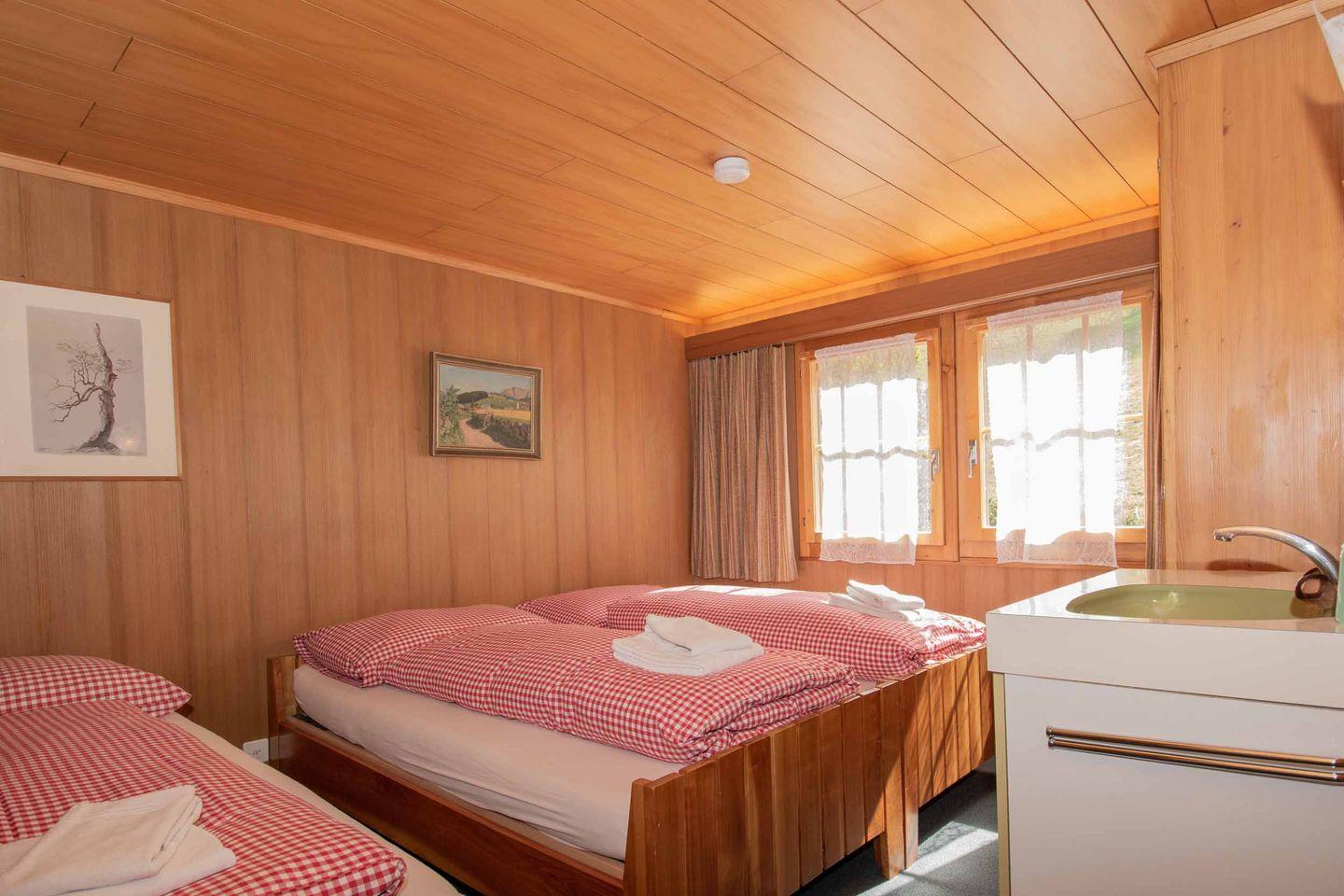 Das Chalet Iris, ein typisches Berner Oberländer Chalet, befindet sich an sehr ruhiger Lage, mitten im Grünen. Mit dem grossen Garten ist es besonders für Familien geeignet. 2 Schlafzimmer bieten 4 - 5 Personen Platz. Im gemütlichen Wohnraum finden Sie eine Polstergruppe, TV, Radio, Internet, einen Esstisch und ein Pellet-Ofen für gemütliche Abende. Die separate Küche ist mit Kochstelle, Backofen, Kühlschrank, Kaffeemaschine, Fondue und Raclette ausgerüstet. Das Bad ist mit Dusche, WC und Lavabo ausgestattet. Vom Balkon und vom Gartensitzplatz geniessen Sie einen herrlichen Blick auf die Berge. Zur Wohnung gehört auch eine Garage. Die Ski/Orts-Bus Haltestelle ist 150 Meter vom Haus entfernt. Die Zufahrt zum Haus ist nicht möglich. Fussweg von ca. 50 Meter.