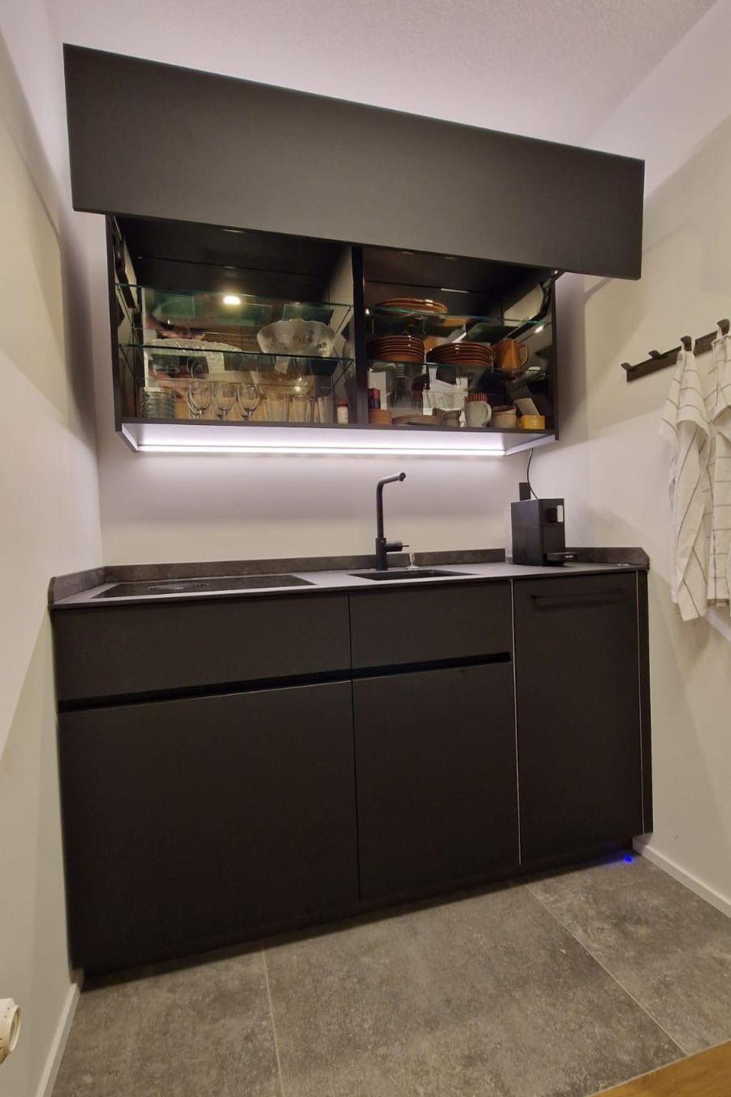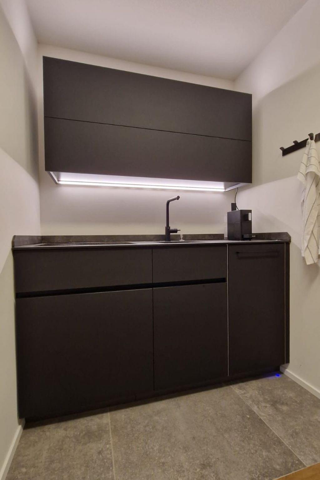 For self-catering, the kitchenette offers a BORA 4-ring hob, a capsule coffee machine, a kettle, a dishwasher and a short-burner oven. Although the flat is not equipped with underfloor heating, it still provides a cosy atmosphere.