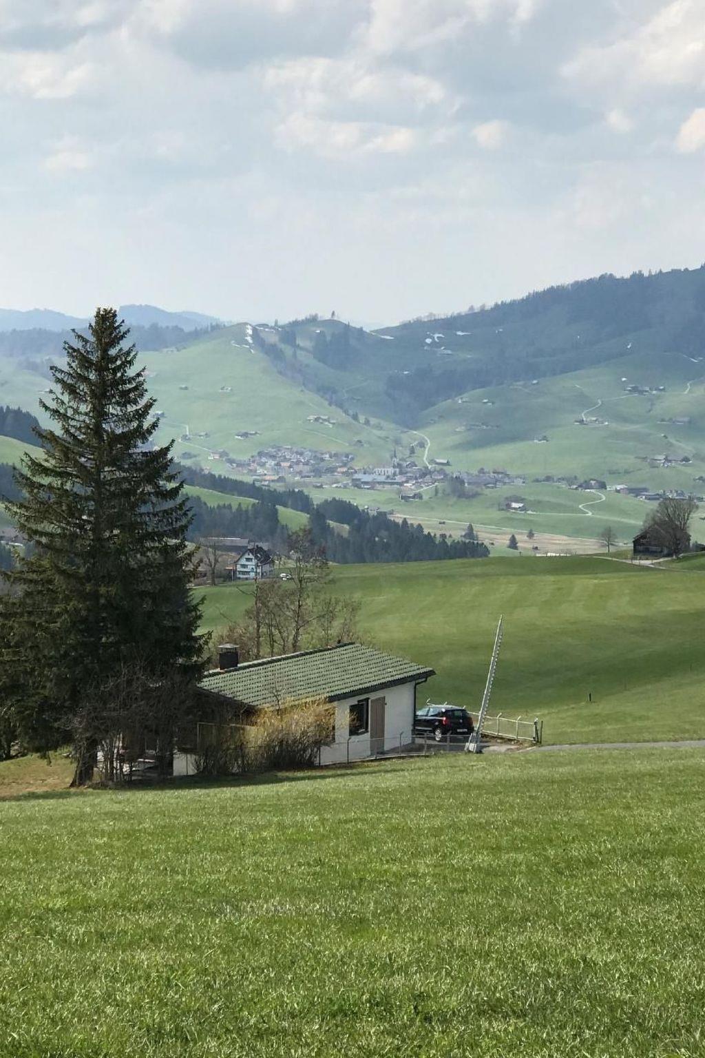 The detached holiday home is situated at 1160 m, 5 km from Appenzell, in the middle of the Appenzell - Kronberg hiking area. The cosy house and the spacious grounds invite you to relax and the fireplace in the living room creates a homely atmosphere. The 4 1/2 room house offers space for 6 people and the minimum stay is 5 nights. This means you benefit from the popular Appenzeller holiday card, which you can use to explore our village and the surrounding area.included in the price: Towels, kitchen linen, bed linen, wood, electricity, water, W-lanThe price does not include the visitor's tax from 16 years. 2.50.- per person and day.the accommodation is 84 m2 and has a spacious garden including terrace and barbecue area.the house has 3 bedrooms. There are no doors in 2 of the bedrooms (a curtain replaces the door) and there is no underfloor heating. Slippers are therefore recommended.