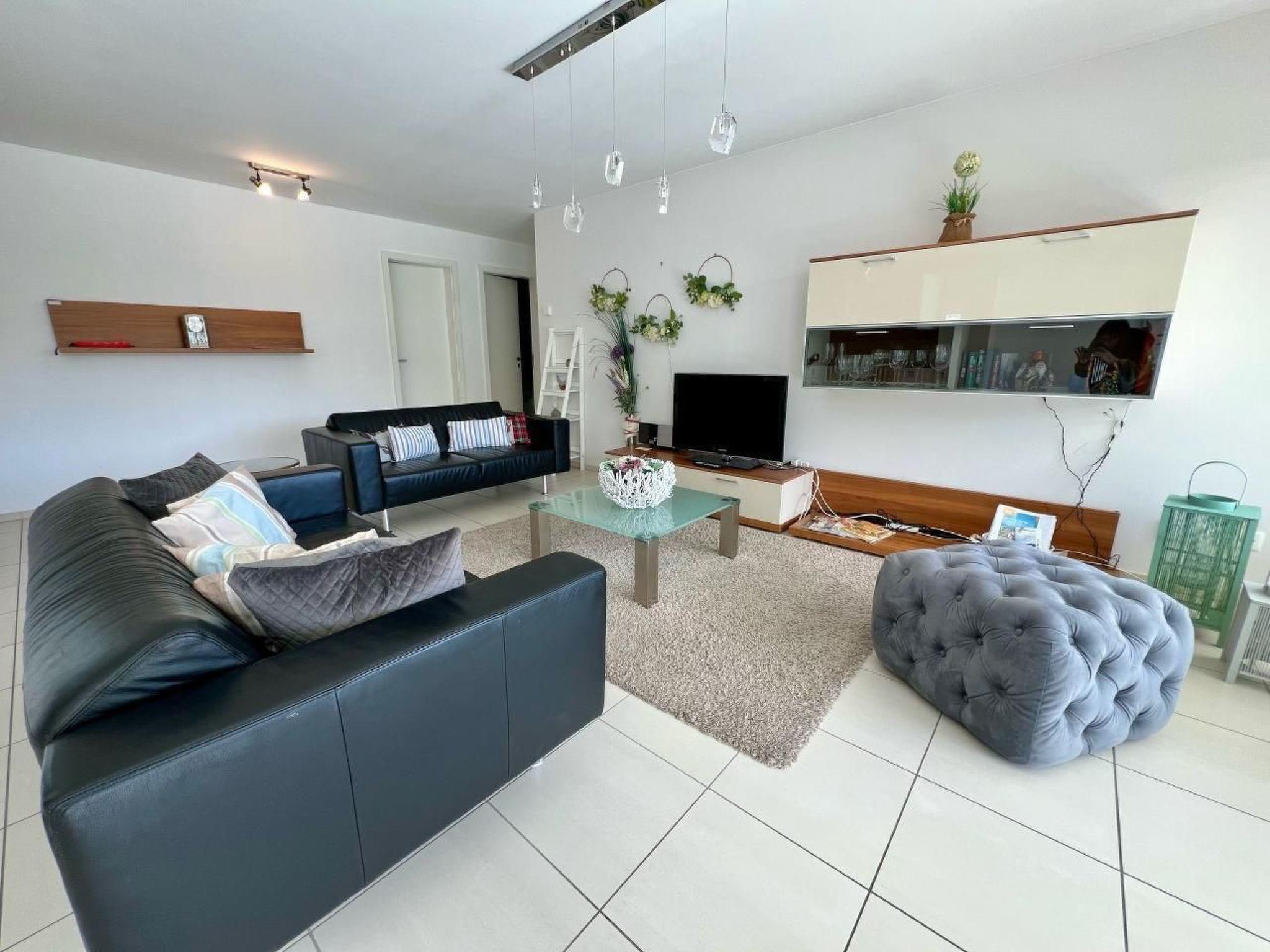 Inside you will find a bright living area with a comfortable seating area, LED TV and radio, perfect for relaxing evenings. The modern, open-plan kitchen is equipped with everything you need to prepare delicious meals: Ceramic hob, oven, microwave, fridge, freezer, coffee machines, toaster and dishwasher. For your comfort, there are also two bedrooms, one with a double bed and one with a double bed and an extra bed, both connected to a private shower/WC. A further bathroom with bathtub/shower/WC and washing machine is at your disposal.