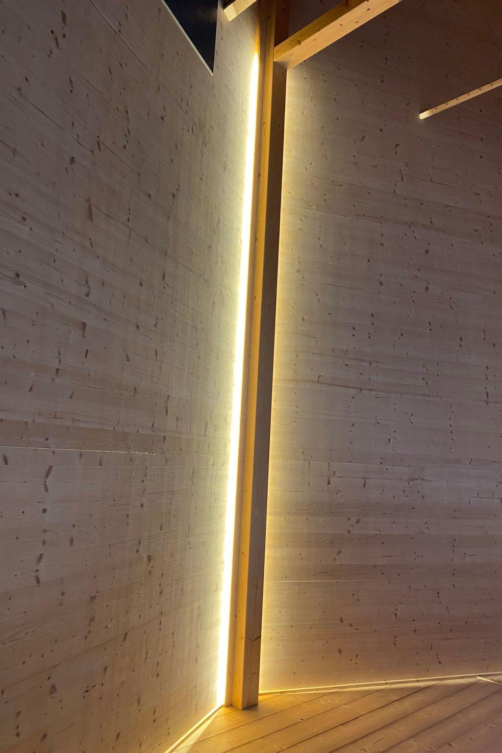 The fireplace, together with the solar system, also feeds the underfloor heating.