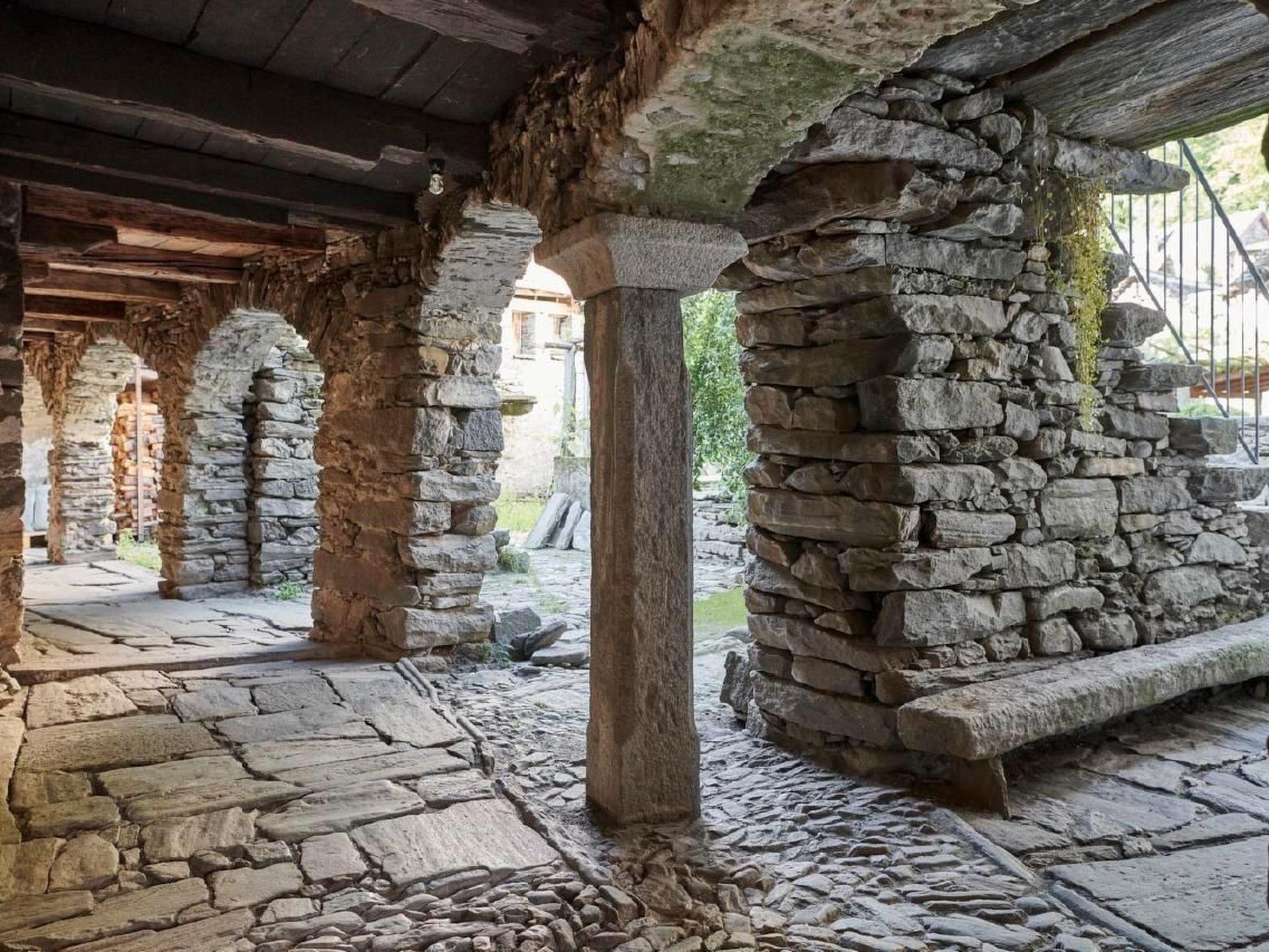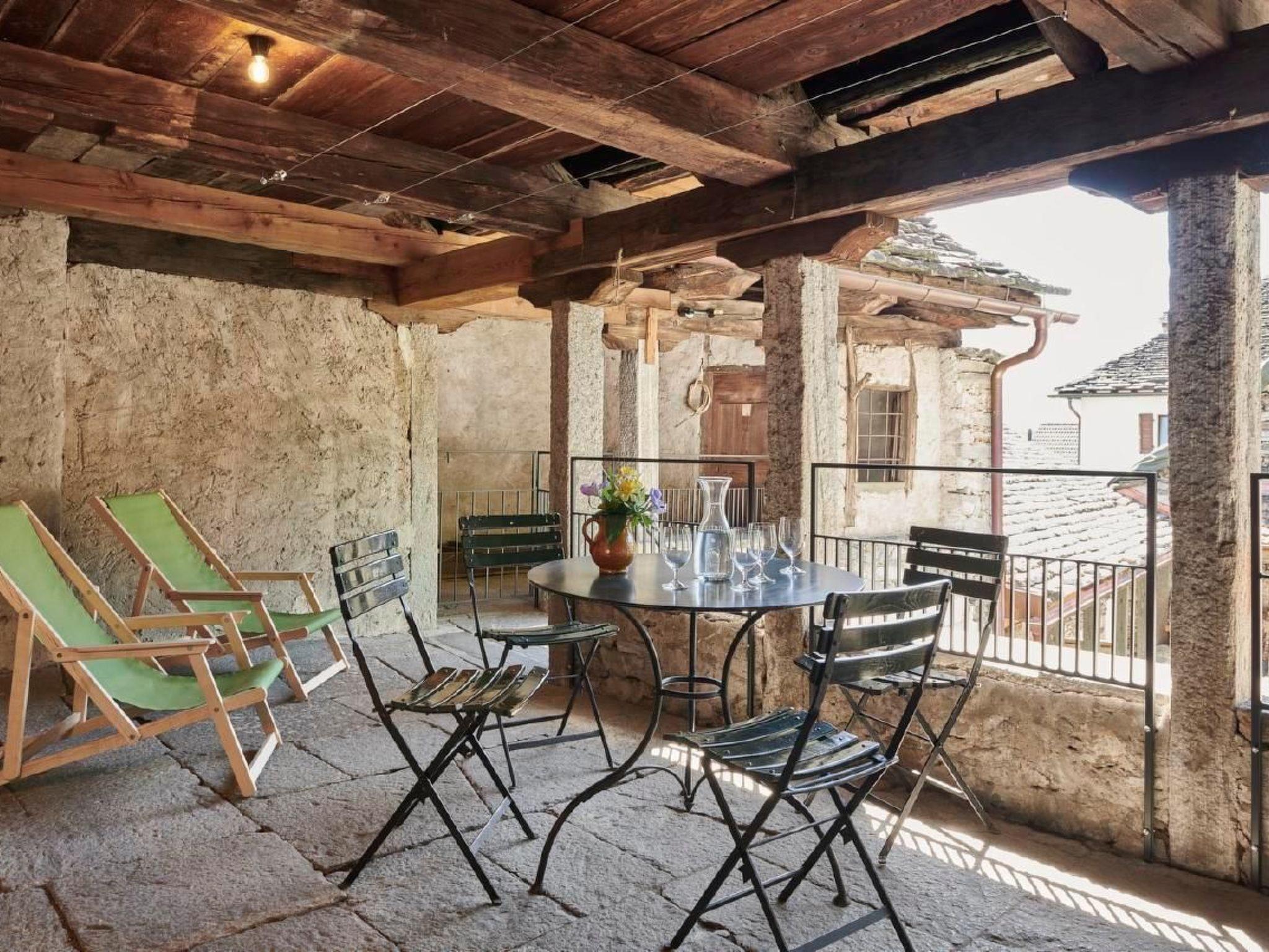 Outdoor space: covered pergola on the first floor - the neighbouring house - the Ca‘ di Bifúi is built very interlocked with the Casa Portico - on the same floor the guests of the Ca’ di Bifúi go up to the roof terrace. The outdoor space is also partly used by the residents.