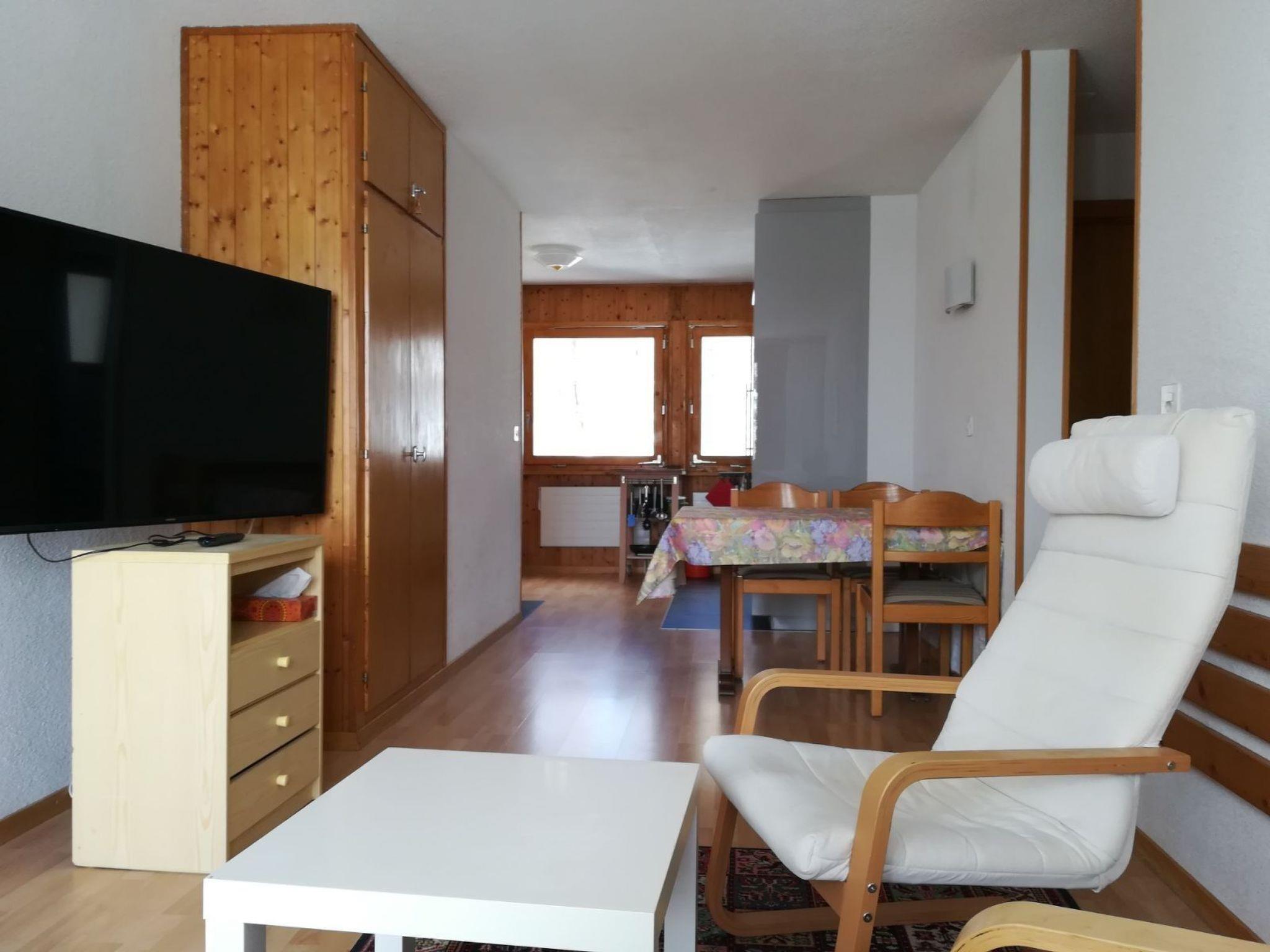 Bright 3.5 room flat (54 m2) on the 6th floor, beautifully furnished, open-plan living/dining room with sofa bed and wonderful view of the mountains and the nearby forest, 1 room with double bed, 1 room with 2 single beds, bathroom, separate WC, cable TV, large balcony (south-east), open-plan kitchen (dishwasher, ceramic hob, microwave with freezer function, Nespresso machine and kettle), large heated ski room on the ground floor for private use.