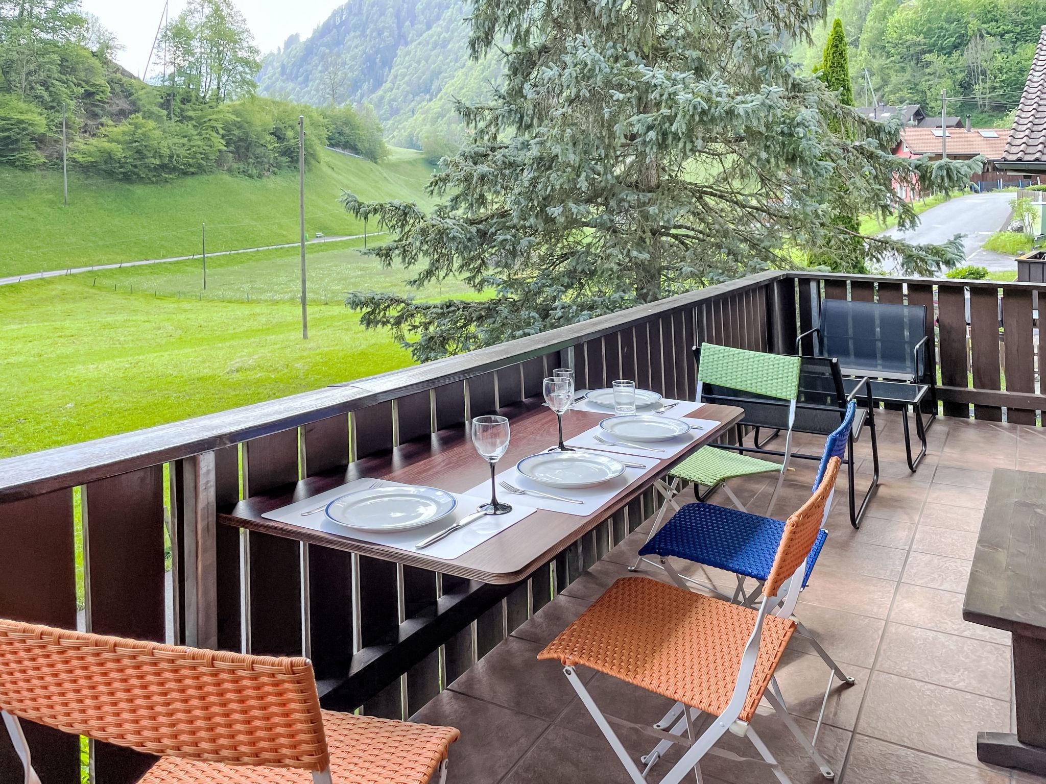 It is a completely renovated and furnished 2½-room apartment in a chalet. Absolutely quiet location with a view of the countryside, nestled in the mountains and away from traffic and the main road to the Brünig pass.