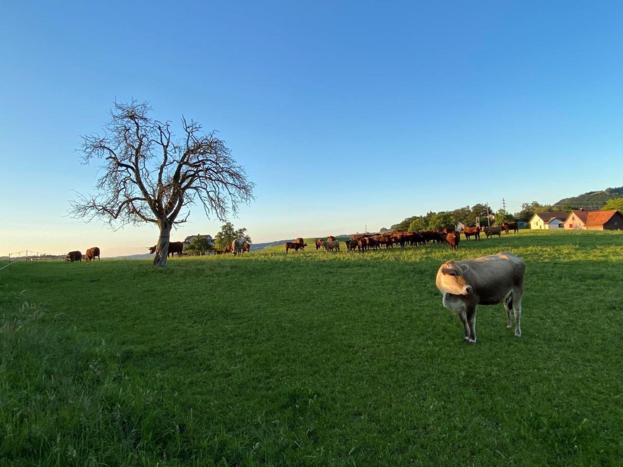 The newly renovated holiday flat "Bauernhof Sal" (100 m2) is situated above Bütschwil, in the middle of Toggenburg. The farm is home to around 25 suckler cows with their calves, many donkeys and a herd of fallow deer. Dwarf goats, chickens, rabbits and cats are also looking forward to meeting you.