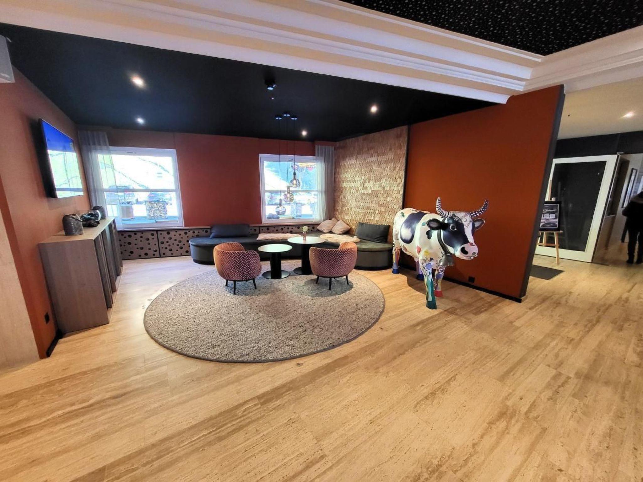 Outside, the hotel offers a range of free amenities, including a sauna, fitness centre, indoor swimming pool, mini-golf, billiards, table tennis, a children's area and a playground. For guests who like to be active, a ski and bicycle storage room is available for use free of charge.