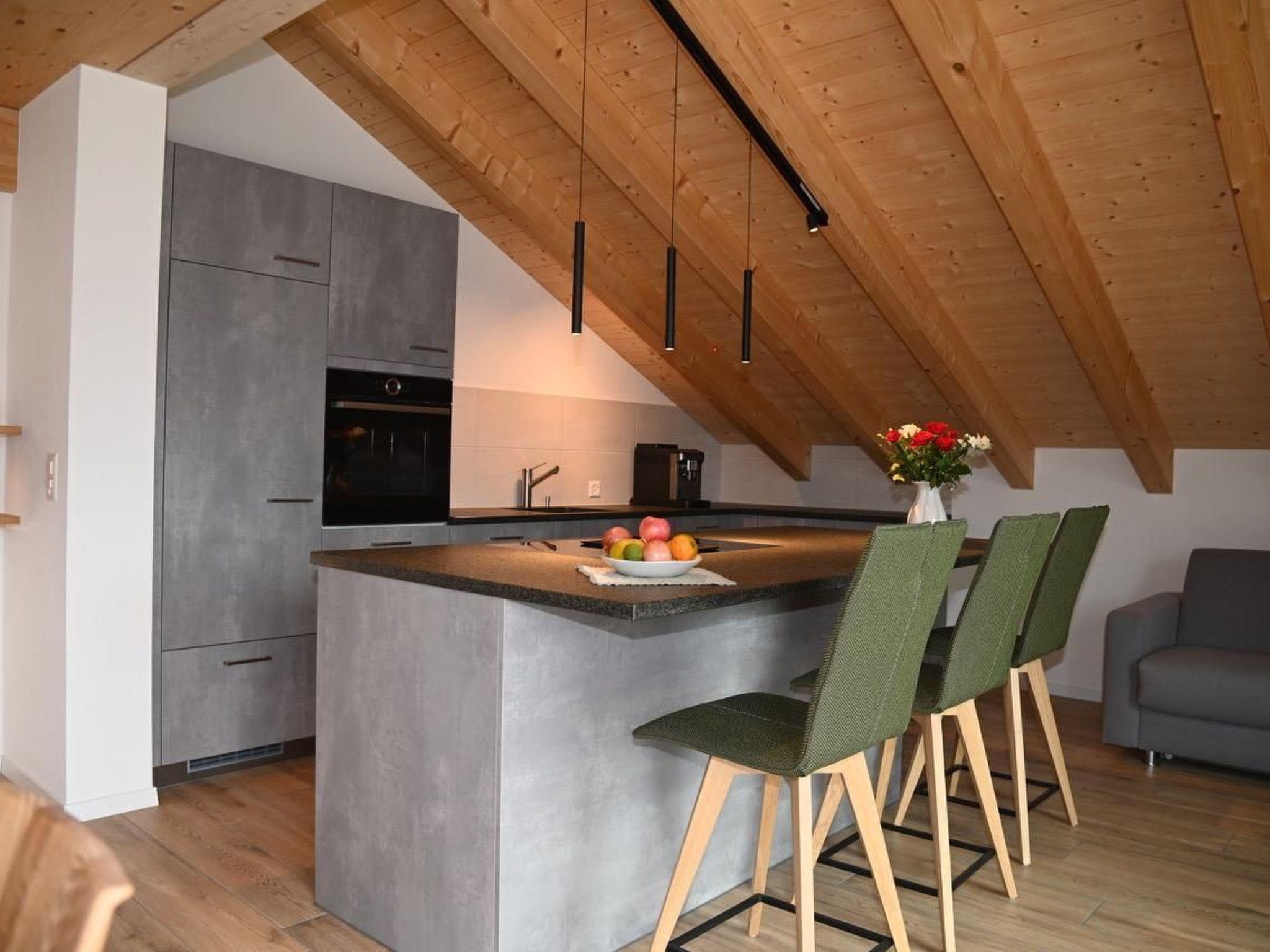 The apartment offers plenty of conveniences so you can enjoy a care-free holiday. The view from the apartment to the mountains and lake Thun is second to none. From the balcony on the South side (44 m2) with comfortable outdoor furniture, sun blind and electric grill you can enjoy the wonderful view to the most famous mountain tops of the Bernese Oberland – Eiger, Mönch and Jungfrau and from the balcony on the Western Side you marvel at the sun setting over the mountains leading to the Kander Valley and beyond.