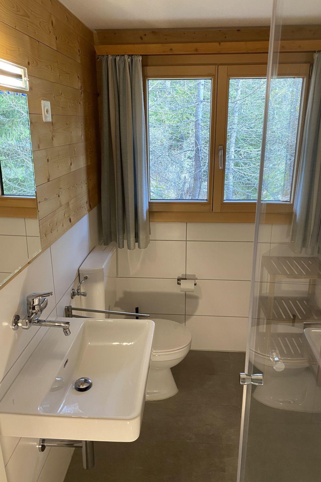 "Chalet Soldanella (BEL205)", 4-room chalet 90 m2 on 2 levels, south-west facing position. Partly renovated in 2016, rustic and cosy furnishings: living/dining room with open-hearth fireplace and satellite TV (flat screen), radio. Exit to the balcony. Open kitchen (oven, dishwasher, 4 ceramic glass hob hotplates, toaster, kettle, electric coffee machine, fondue Set (cheese)). Shower/WC. Electric heating. On the lower ground floor: (steep stair), 2 double bedrooms. 1 room with 2 beds. Bath/WC. Parquet floors. Balcony. Balcony furniture, box-room. Beautiful view of the mountains and the forest. Parking at 200 m. Please note: non-smokers only.