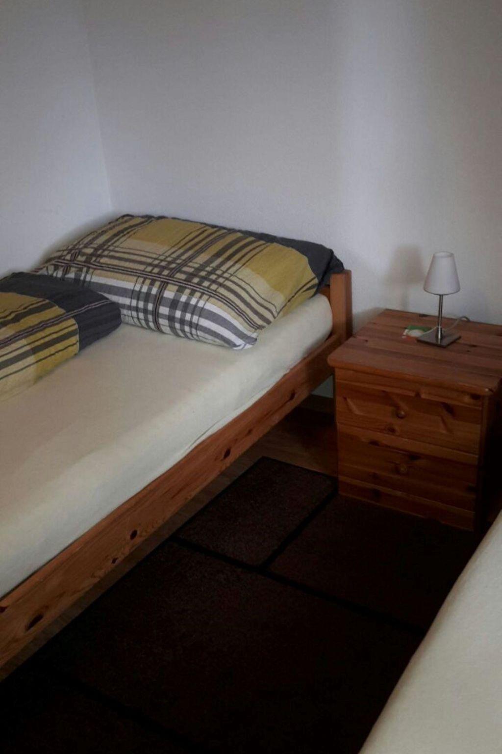 The three-room apartment is tastefully and cozily furnished. It features two bedrooms, one with a double bed (two single mattresses), the other with two single beds, as well as a combined living and kitchen area. The bathroom is equipped with a shower and WC. The apartment offers modern comfort with underfloor heating, a dishwasher, satellite TV, a radio, a washing machine and a tumble dryer.