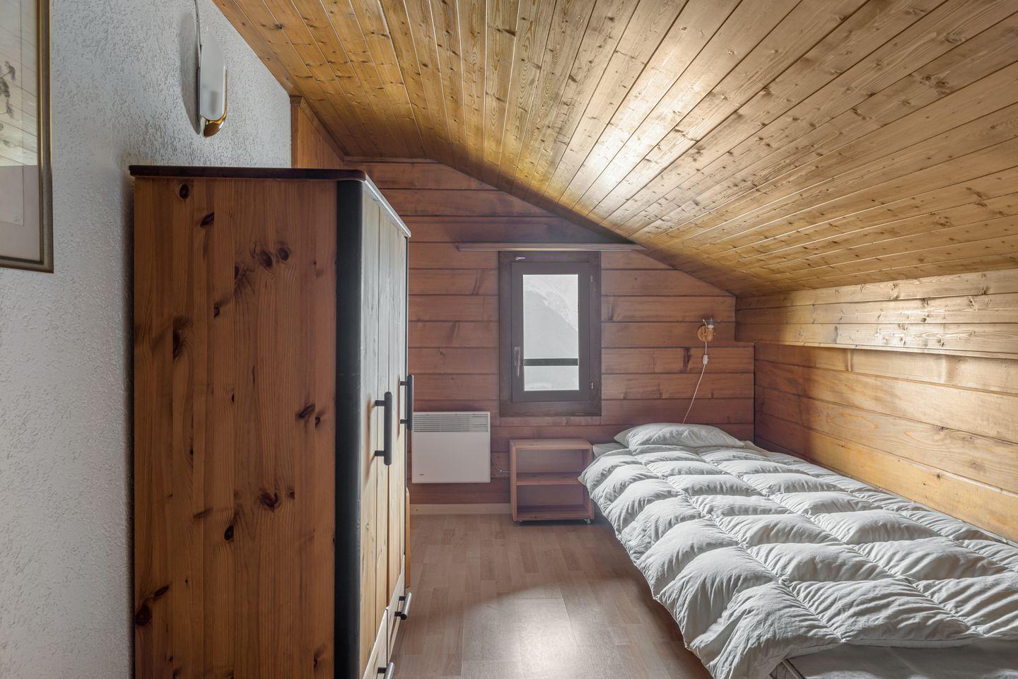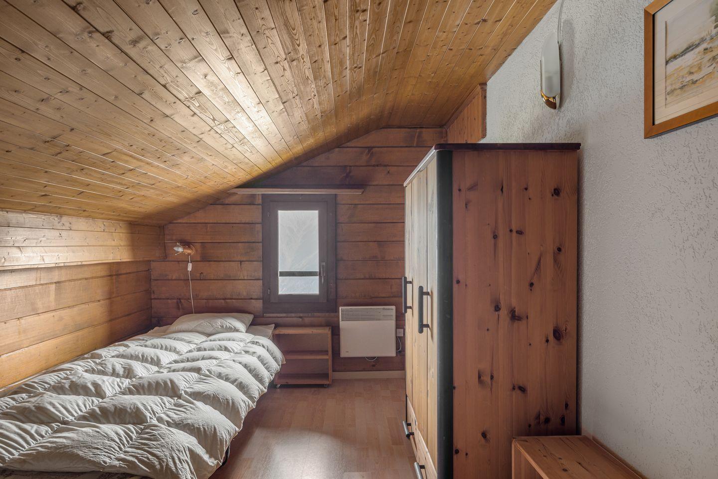 Dachgeschoss in Dachschräge mit 2 Zweibettzimmer mit je 2 Einzelbetten und Badezimmer mit Dusche/WC/Lavabo.
