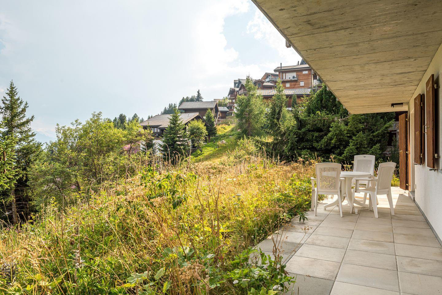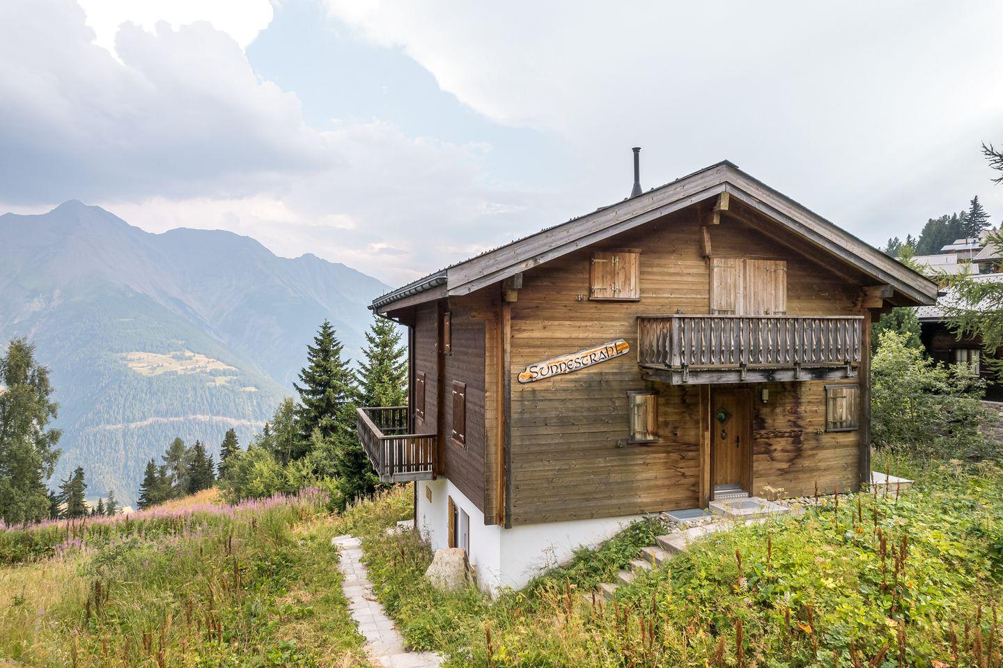 Das Haus ist mit seinem Terrasse nach dem ruhigen Süden ausgerichtet und bietet freie Aussicht auf die gegenüberliegenden Berge bis hin zu den Walliser Alpen.