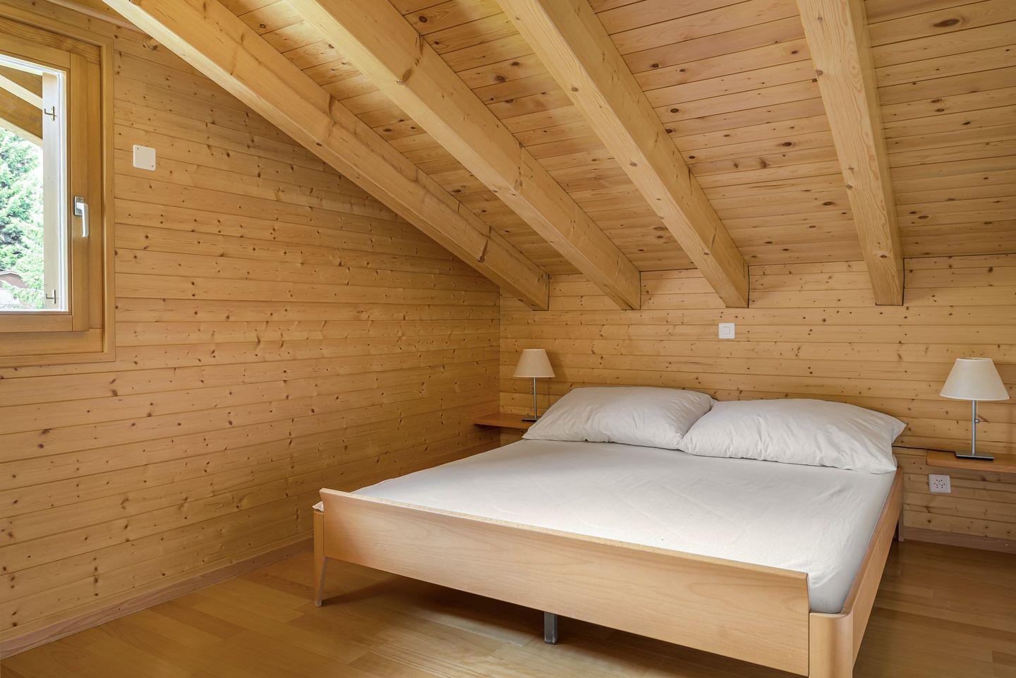 Das Haus, mit Abstellraum/Skiraum im UG, richtet sich mit den Balkonen nach dem ruhigen Süden aus, mit Aussicht auf die gegenüberliegenden Berge bis hin zu den Walliser Alpen.
