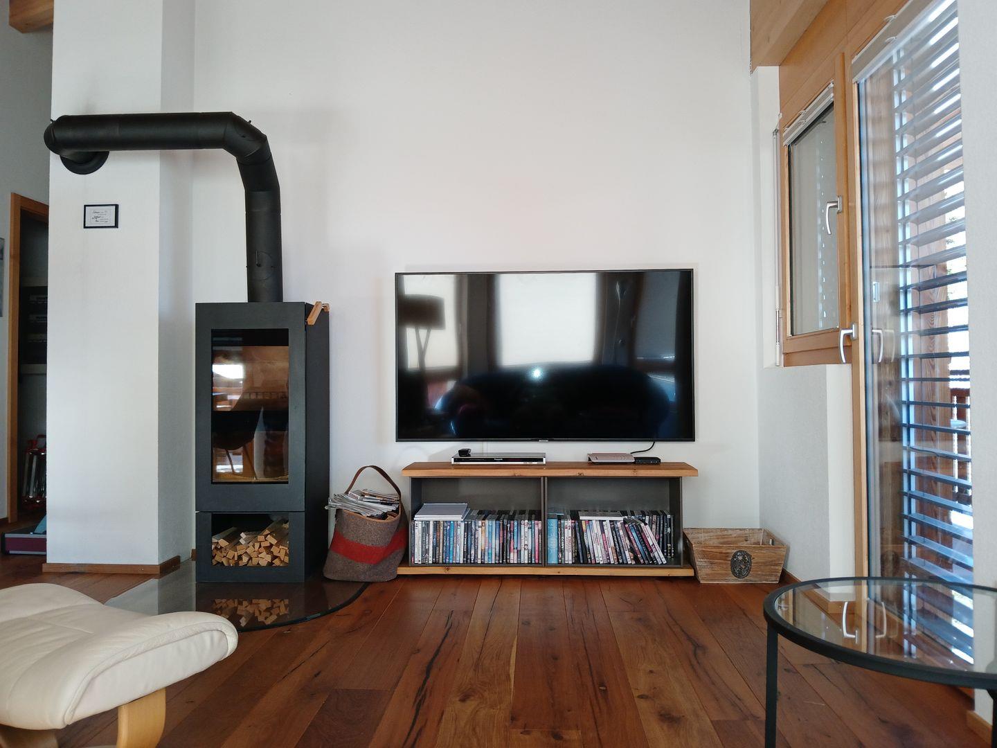 Die Wohnung hat einen hohen Ausbaustandart und ist im Dachgeschoss des Hauses. Sie unterteilt sich in 2 Schlafzimmer für je 2 Personen, 1 Badezimmer mit Dusche, WC und Lavabo. Garderobe, Wohn/Esszimmer mit offener Küche und Schwedenofen. Der gebaute Erker gibt dem Wohnzimmer eine spezielle Note. Die 2 Balkone (Südbalkon mit viel Sonne, Ostbalkon für die Morgensonne) geben eine herrliche Aussicht auf die Bergwelt.