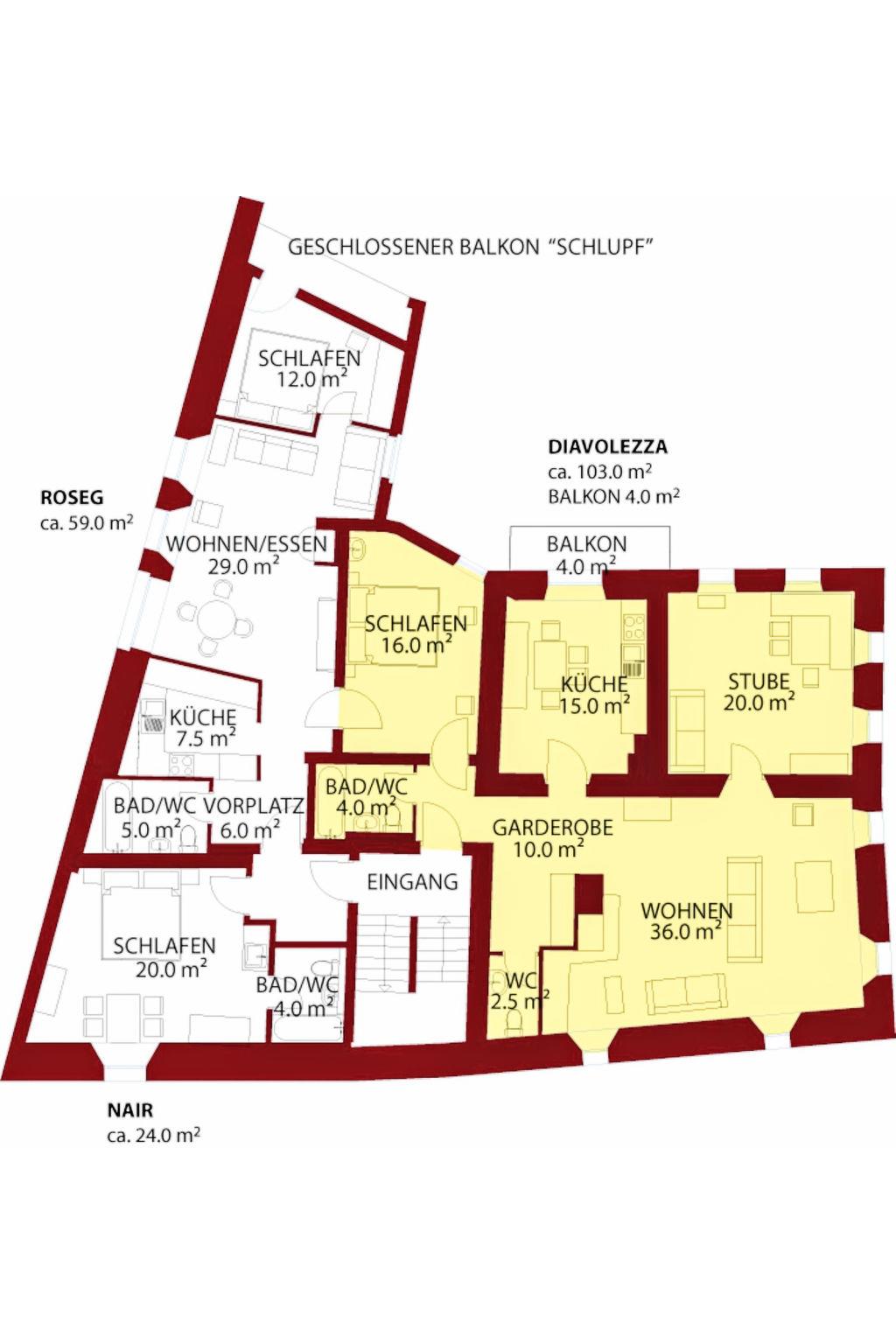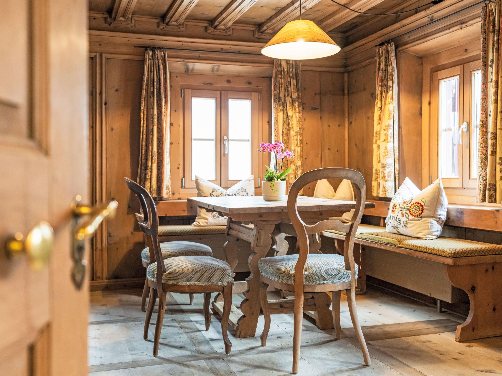 The 3½-room apartment Diavolezza is located on the 1st floor of the historic Chesa Michel and offers a stylish and comfortable home for up to 4 people on 103 m2. The apartment is built in the traditional Engadine style and partly furnished with antique furniture, which preserves the authentic character of the house.