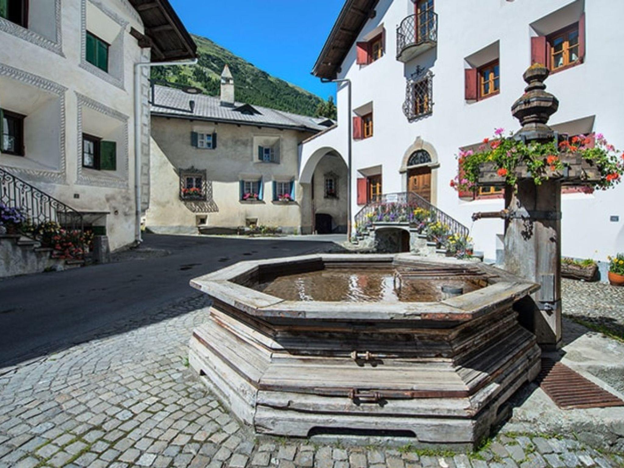 Natural stone floors and parquet with underfloor heating ensure a pleasant indoor climate. Historical photographs make reference to Bever and the Upper Engadin. A small balcony offers a view of the village center with a church and a little distance view.