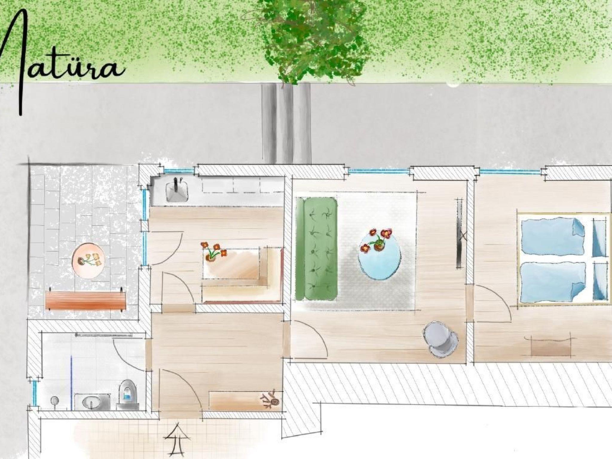 **Discover our Natüra** holiday flat - your cosy 45 m² hideaway, located in a beautiful confectioner's villa. This charming 2-room flat welcomes you with an open-plan cloakroom in the entrance hall and offers a very special living atmosphere thanks to its location on the ground floor with bedroom and living room in the raised basement.