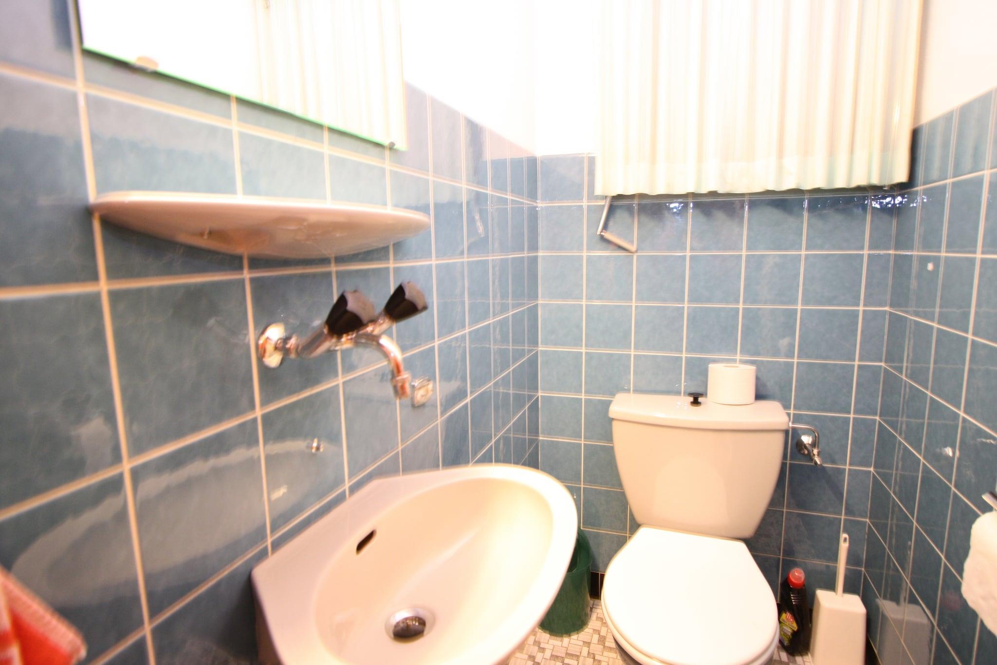 Ground floor: (hallway, Living room(dining table, fireplace, seating area, DVD player, radio, CD player), Kitchen(oven, microwave, dishwasher, freezer), bedroom(2x single bed), bathroom(bathtub with shower, washbasin, toilet), toilet(washbasin)) On the 1st floor: (bedroom(bunk bed, washbasin), bedroom(2x single bed), bedroom(2x single bed), bedroom(2x single bed, coffee machine), bathroom(bathtub with shower, washbasin, toilet)) Living room(seating area), storage, microwave, tumble dryer, washing machine, balcony, heating(central), terrace(private), garden(private), garden furniture, BBQ, 4x parking, play equipment, children's bed, high chair