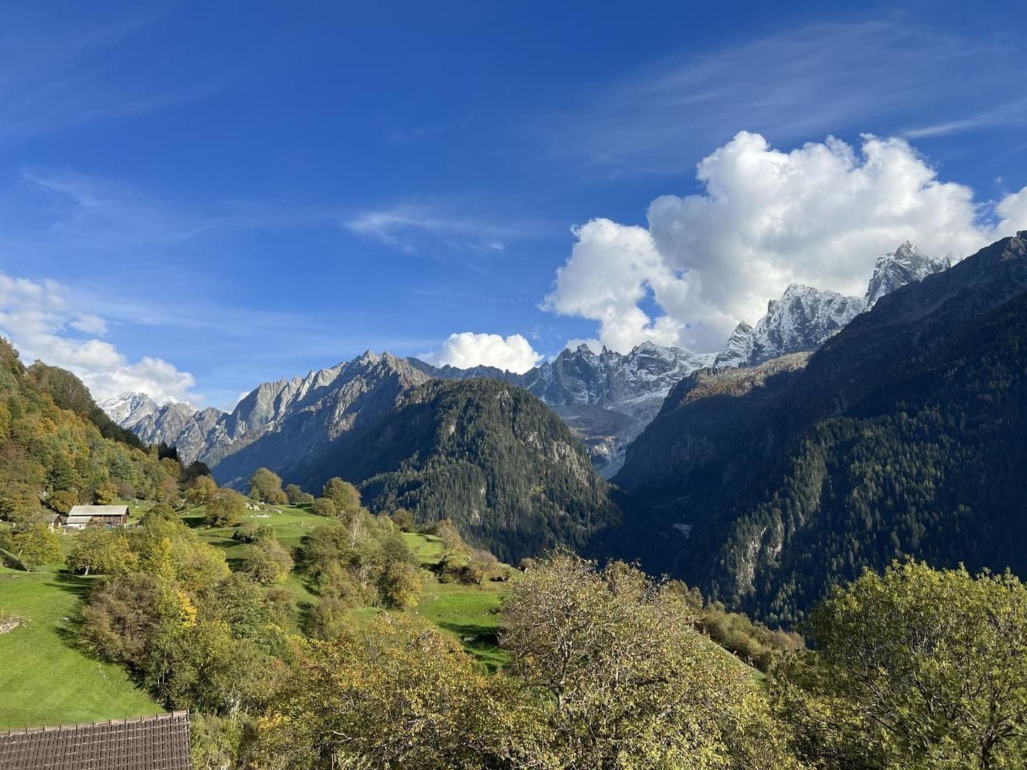 Idyllically situated, sun-drenched chalet (80m2) on a beautiful plateau 1495 m above sea level. Room for 4 people, 3 bedrooms (new mattresses) on the 1st floor, balcony, fully equipped kitchen made of Swiss stone pine with cosy sitting area, shower/WC, wood-burning stove with wood provided. Car park 50m from the house. Post bus stop "Casaccia Löbbia" 15 minutes on foot (ascent only 70 metres).