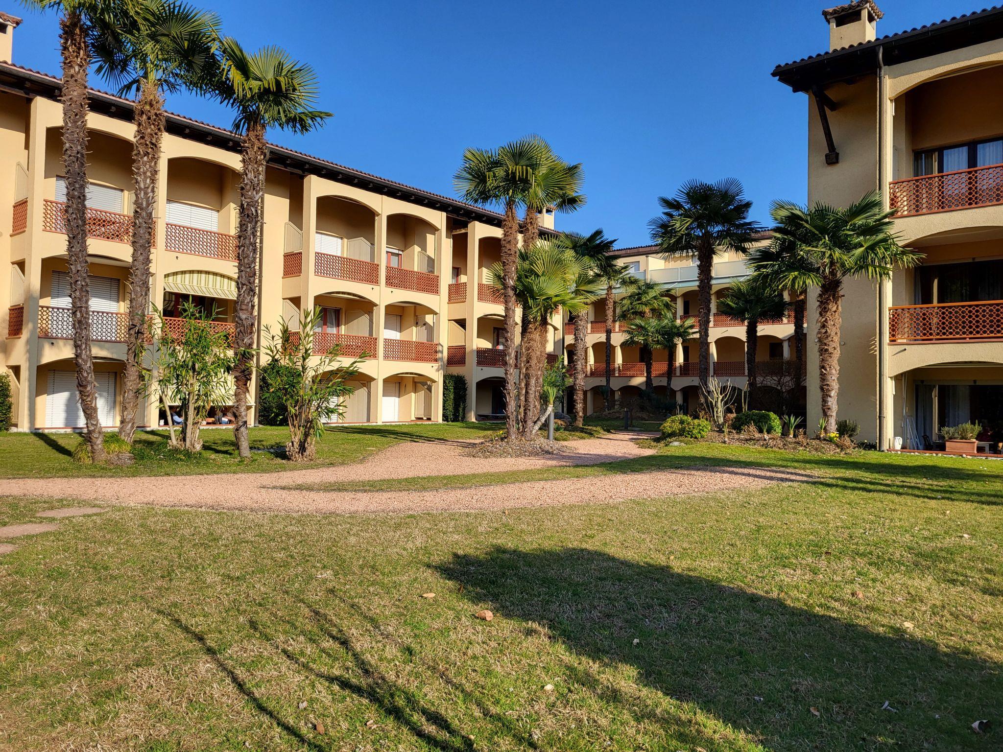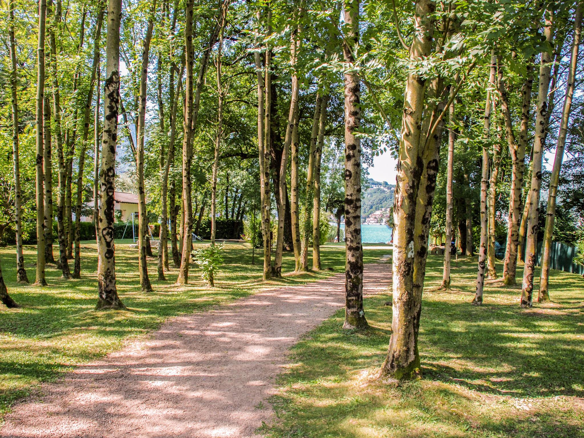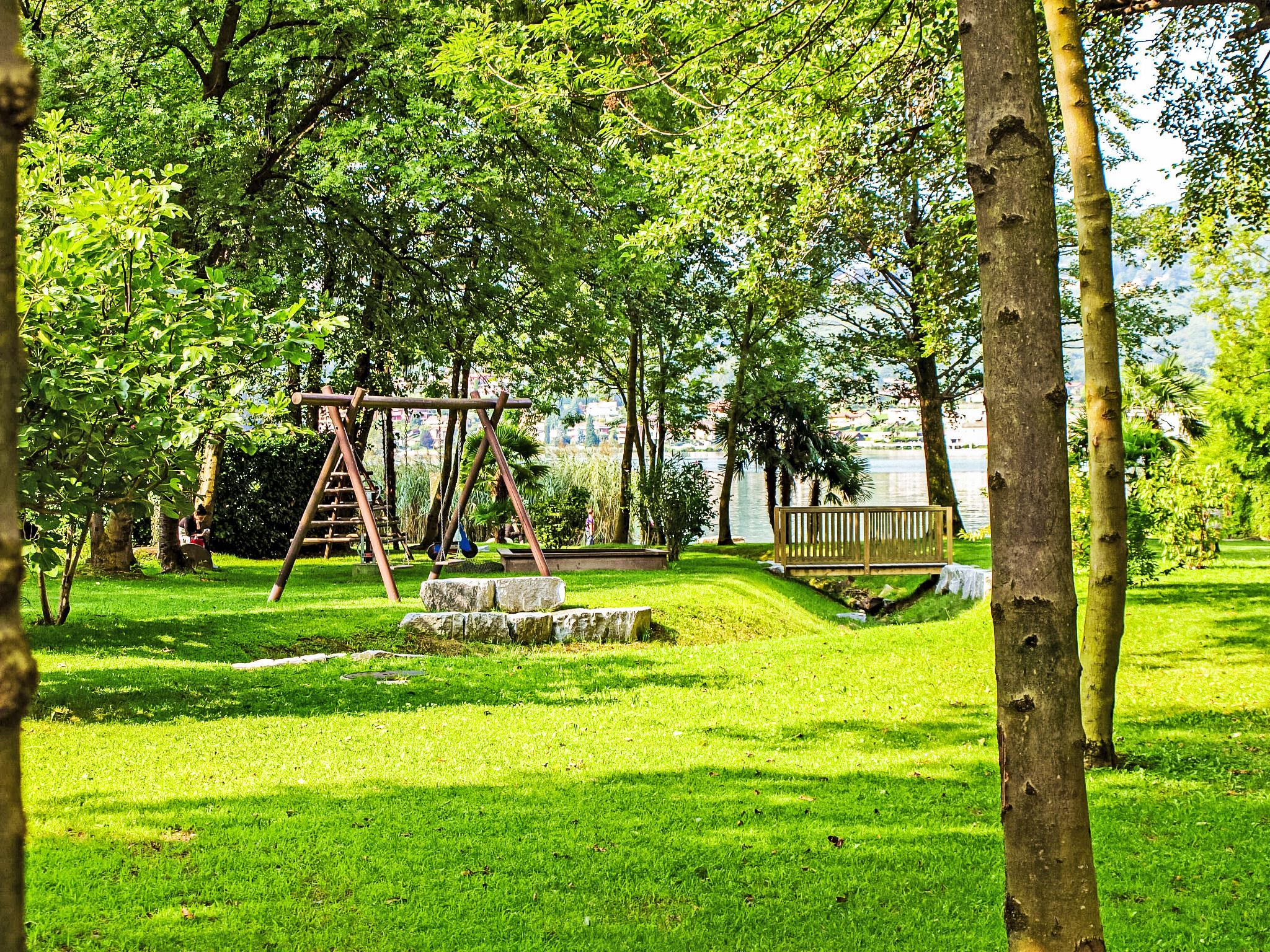 Caslano 8 km from Lugano: Residence "Parcolago (Utoring)", surrounded by trees. In the resort, 1 km from the centre, in a quiet, sunny position, 50 m from the lake, road to cross, located by a road. For shared use: park, lawn for sunbathing. Tennis (1 x clay court) (extra), table tennis. In the house: restaurant, central heating system, washing machine (extra), tumble dryer (for shared use, extra). Motor access to the house. Parking, communal covered parking at the house. Shop 700 m, restaurant 10 m, 15 minute walk to the centre, bus stop "Caslano stazione" 950 m, railway station "Caslano stazione" 950 m, bathing lake "Lago di Lugano" 50 m, lake Lago di Lugano. Golf course (18 hole) 2 km, tennis 500 m, minigolf 1.6 km, walking paths from the house 10 m. Nearby attractions: Mercato di Ponte Tresa (IT), Mercato di Luino (IT), Zoo, Magliaso, Swissminmiatur, Melide, Schokoladenfabrik Alprose, Caslano, Outlet Foxtown, Mendrisio. Well-known lakes can easily be reached: Lago di Como, Lago Maggiore. Hiking paths: Monte di Caslano, Alto Malcantone, Monte Lema - Monte Tamaro. The holiday residence has direct access to the lake and is only separated from the lake by a street. Playground and garden chess. Comfortably and modernly furnished apartments. Depending on the apartment, 1 indoor or outdoor parking space is included in the rental price (note: garage entrance is only 1.80 m high!).