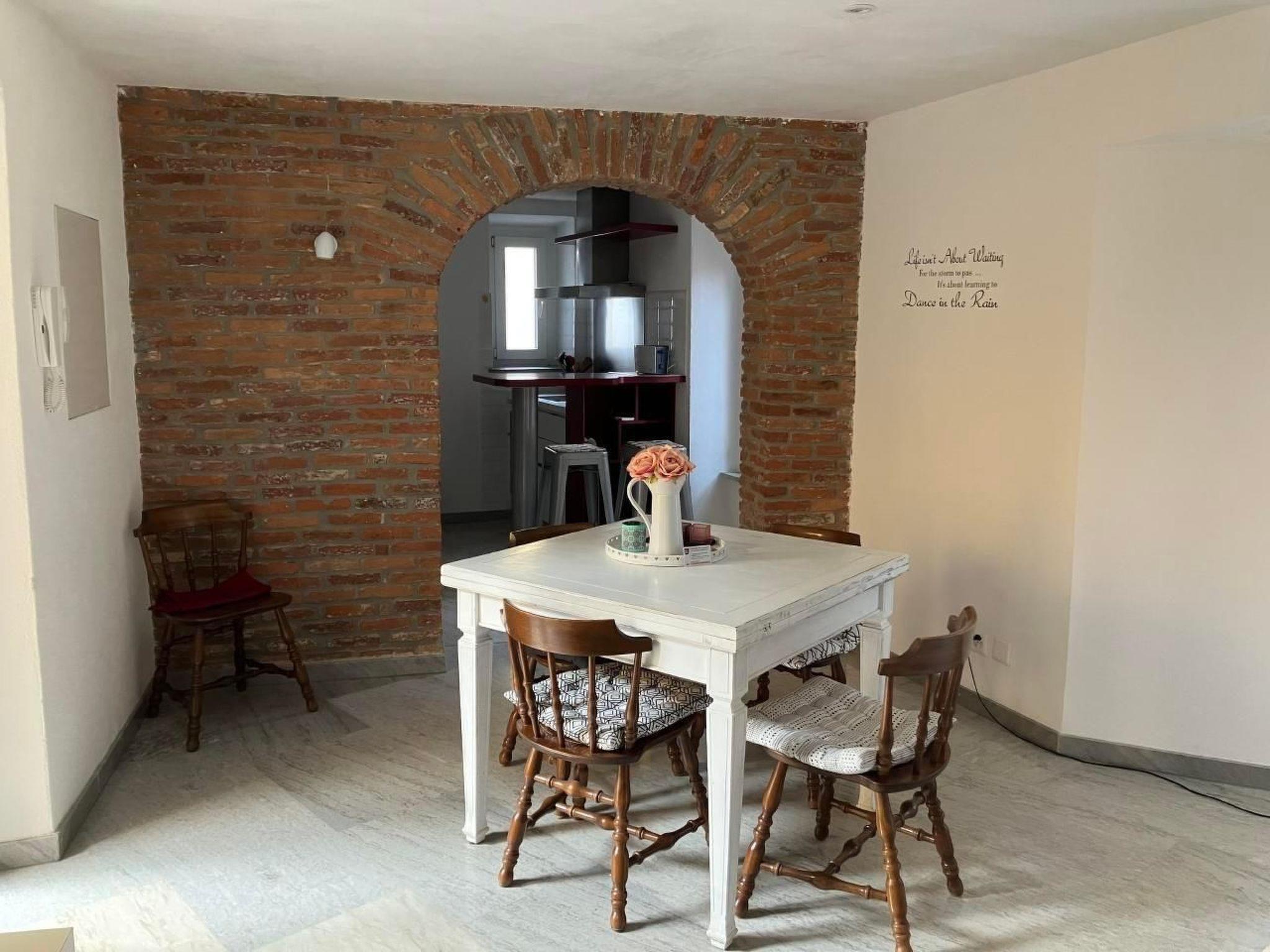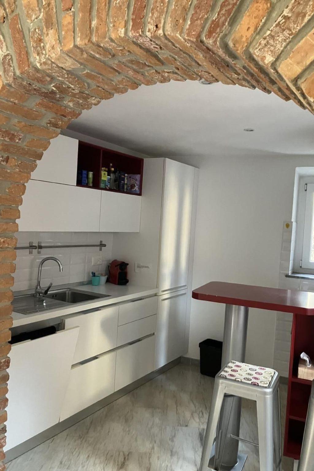 Inside, the house proves to be an oasis of comfort and style. The first flat is spread over two levels: the lower floor welcomes guests with a bright living room equipped with a sofa and dining area, a well-equipped kitchen adjacent to a terrace where you can dine in peace, and a guest bathroom. On the upper level, a double bedroom with dressing room, private balcony and a bathroom with bathtub awaits you. The third level reveals a second studio with exposed beams, living room with double bed, small kitchen and bathroom with shower, all finely furnished.