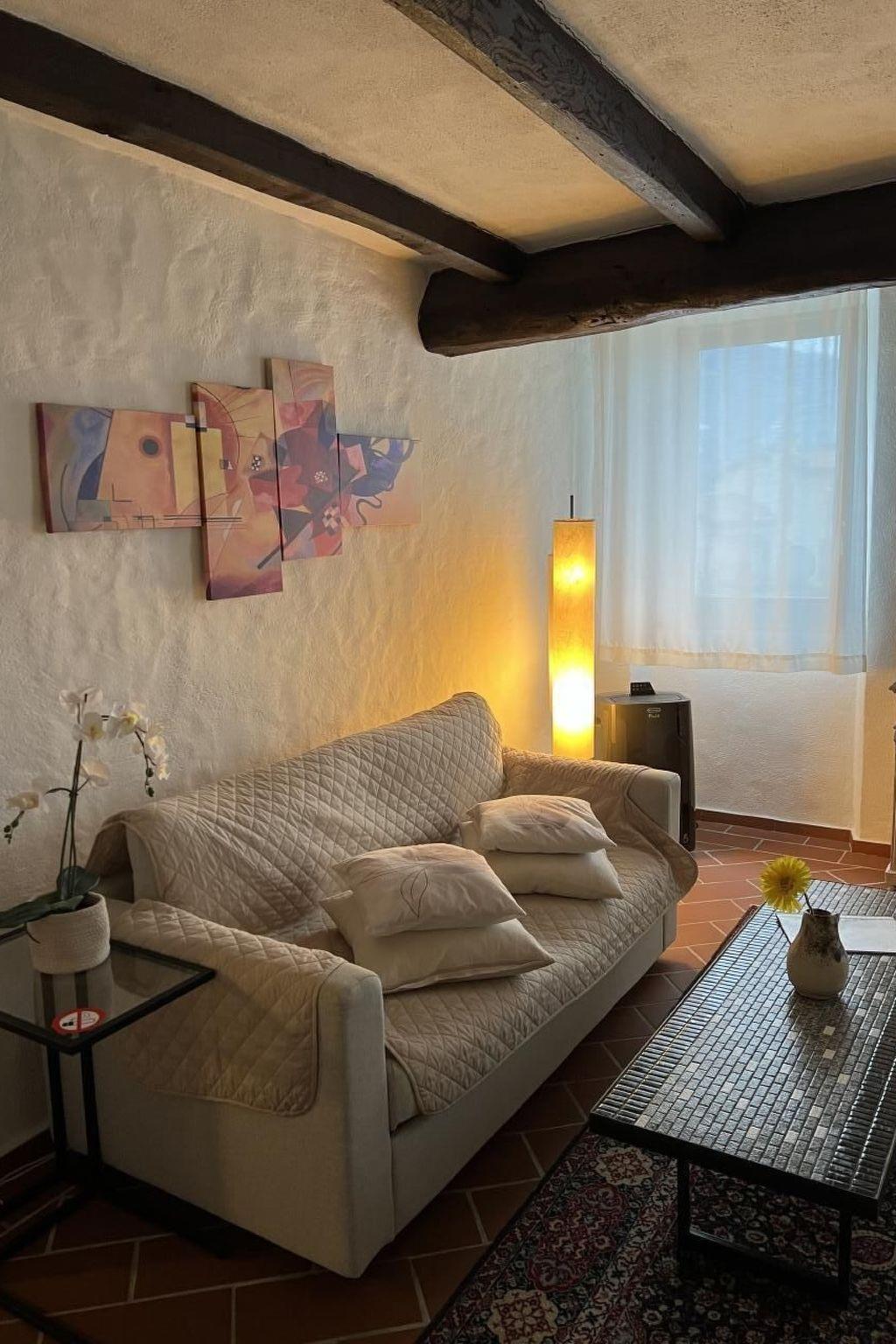 The flat is located in Caslano in via Pasquée 4, 200 m from the lake and 400 m from the little train to Lugano and Ponte Tresa on the Italian border. It is located close to restaurants, grotti and bars in the areaThe flat has a fully equipped kitchen, a dining room with a table for 4 people next to the living room with fireplace, TV and sofa bed on the ground floorUpstairs in the loft there is the bedroom with two single beds and the bathroom with bathtub. The flat has a public pay car park a few metres away.The lakeside village of Caslano is one of the most important municipalities in the Malcantone region. The peninsula-shaped mountain, Sassalto, dominates the village and thanks to its geological, faunal and botanical features, it is a natural site protected by the Swiss Confederation. The area around Caslano is dotted with scenic paths between the mountains and the lake, and there is no lack of opportunities to admire beautiful religious monuments and ancient buildings. Museum lovers can visit the Fishing Museum, one of three in Switzerland, the exhibition of photographic equipment of the Vincenzo Vicari Foundation, and the Chocolate Museum, beloved by gourmets of all ages. Even those who want to do sport will be satisfied: in Caslano and its surroundings, in fact, all kinds of sporting activities can be practised, from tennis to golf, from horse riding to swimming, from sailing to windsurfing.